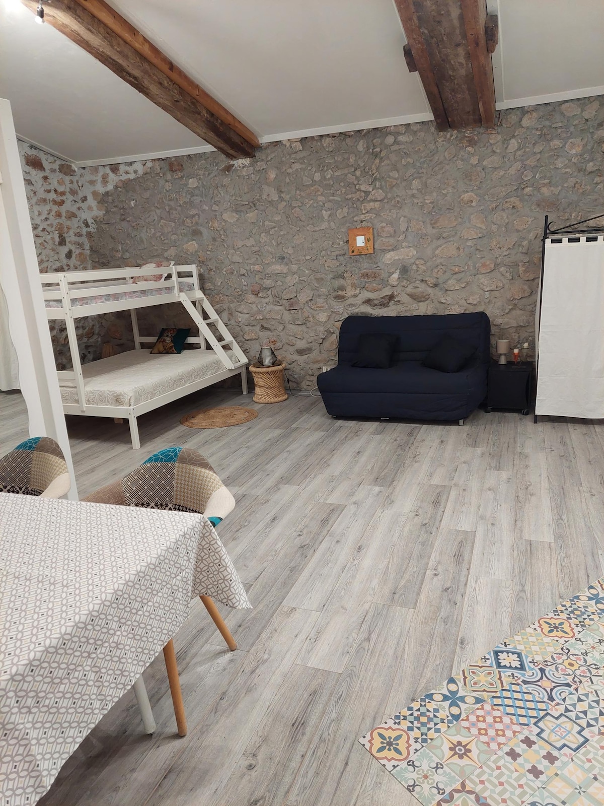This peaceful accommodation, in the heart of the village, offers a relaxing stay for the whole family. Old renovated barn, with an area of 50 m2, bright and with a small outdoor terrace. The parking area (free and private) is shared with the owners and our guests of the guest rooms. There are many opportunities for hiking and wine tasting. Visits: natural and historical sites are also nearby. Beach 40 min from the accommodation