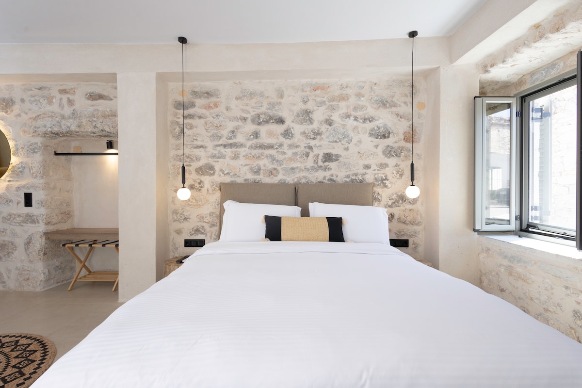Welcome to Almi Guesthouse, a tiny jem, literally on the sea. The guesthouse consists of a single open space with a traditional dome ceiling and a bathroom, a total of 18sqm. Outside there is a paved little yard which leads to the edge of the rocks. The building was reconstructed in 2019 and it is located on the underside of the road that connects the Bridge with the gates of the Castle, near Kourkoula, a natural pool.