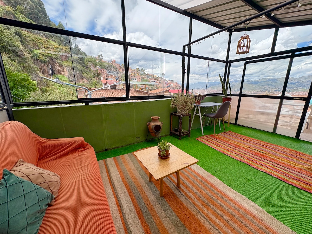 Ausangate by Tiyana Cusco is a cozy apartment with a breathtaking view of Cusco! We're located on the fourth floor of a building just one block from the San Blas Market. The apartment has three views: exterior view, interior courtyard, and terrace (shared). Notable amenities include: - 1 electric heater (convector) - water purification filter - extra-warm duvet - premium mattress - cotton sheets and towels - gas shower