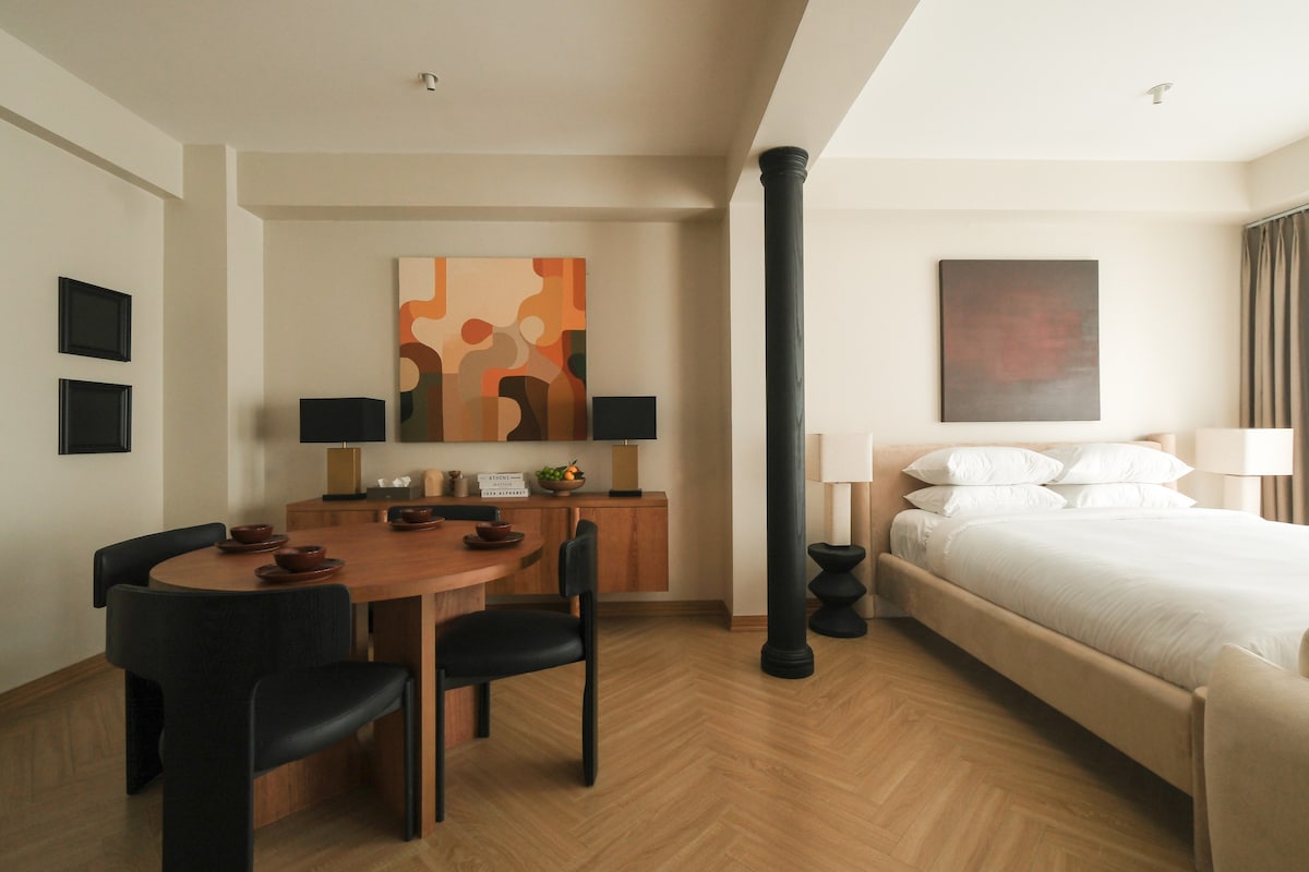 Gerbera The Montclair – Signature Studio with Balcony | Crafted Luxury Living Boutique studio next to Hanoi Old Quarter & Truc Bach Lake. Enjoy natural light, private balcony, and full amenities for short or long stays. In-building café with daily fresh bakery, rooftop terrace with garden & sunset view, and 24/7 security.