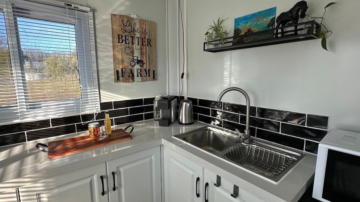 The original stables at historic Longsight have been lovingly restored and converted to luxury boutique accommodation. Many of the original features have been preserved such as the exposed wood rafters, weatherboards, iron roof and facade. Even the original saddle racks remain in the bathroom and old framing timber has been repurposed into a beautiful kitchen island. Perfect for couples or families looking for a relaxing country getaway.