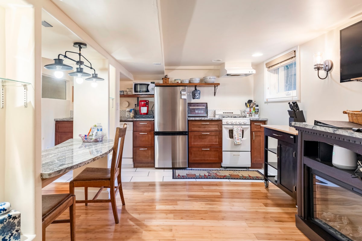 Situated in historic Queen Anne, the apartment is within walking distance of cute cafes, popular restaurants, and nightlife spots along Queen Anne Ave N. The Space Needle is a 7-minute drive away. This charming basement studio apartment has very low ceilings in some spots. Those over 5' 8" will have to duck in a couple of spots. We also have two dogs who you may hear outside in our yard and upstairs. You may hear them from time to time, we try to keep the barking to a minimum.