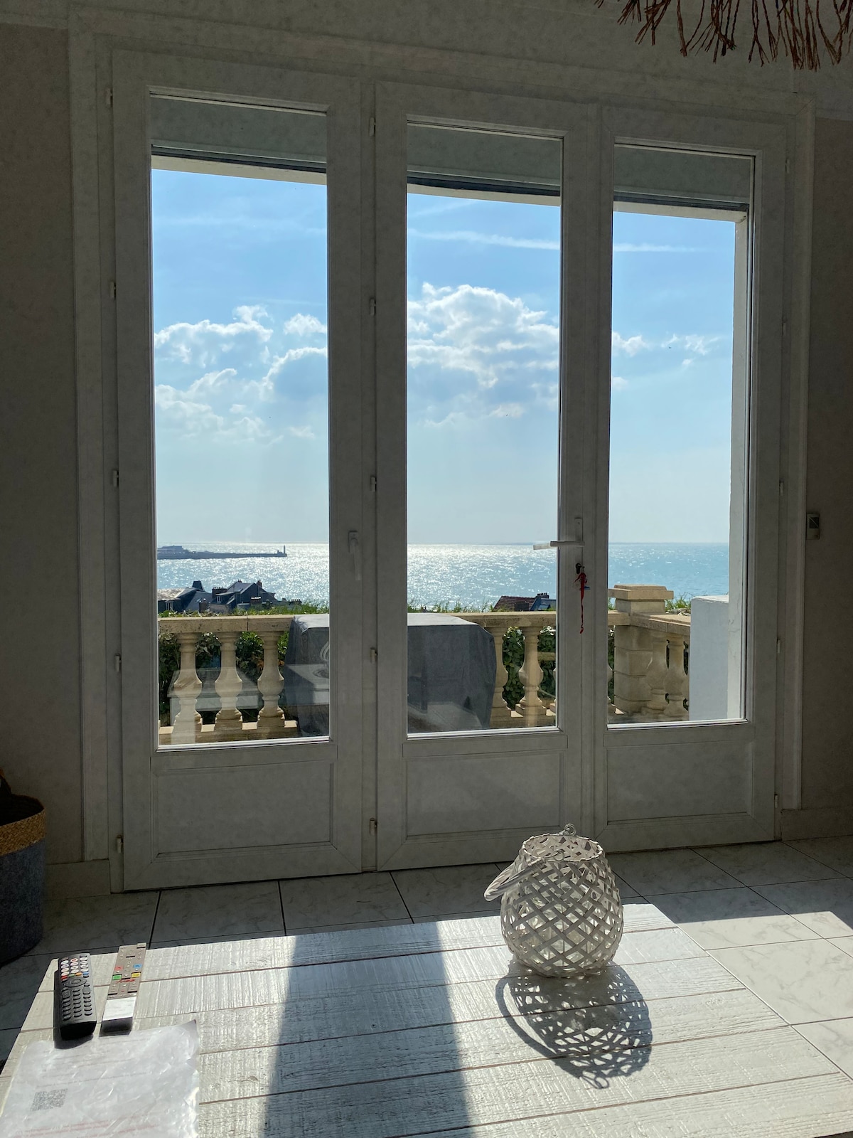 Beautiful 80 m2 fully renovated single-family home facing the sea, ideally located 4 minutes' walk from the beach and shops. You also have a beautiful garden at the back of the house, deckchairs are at your disposal. Upstairs: 1 bedroom with 160 x 200 bed, 1 bedroom with 140 x 190 bed, a small extra bedroom with 1 sofa bed 130 x 190, for children or teenagers. 1 baby crib available On the ground floor 1 large sofa bed in the living room.