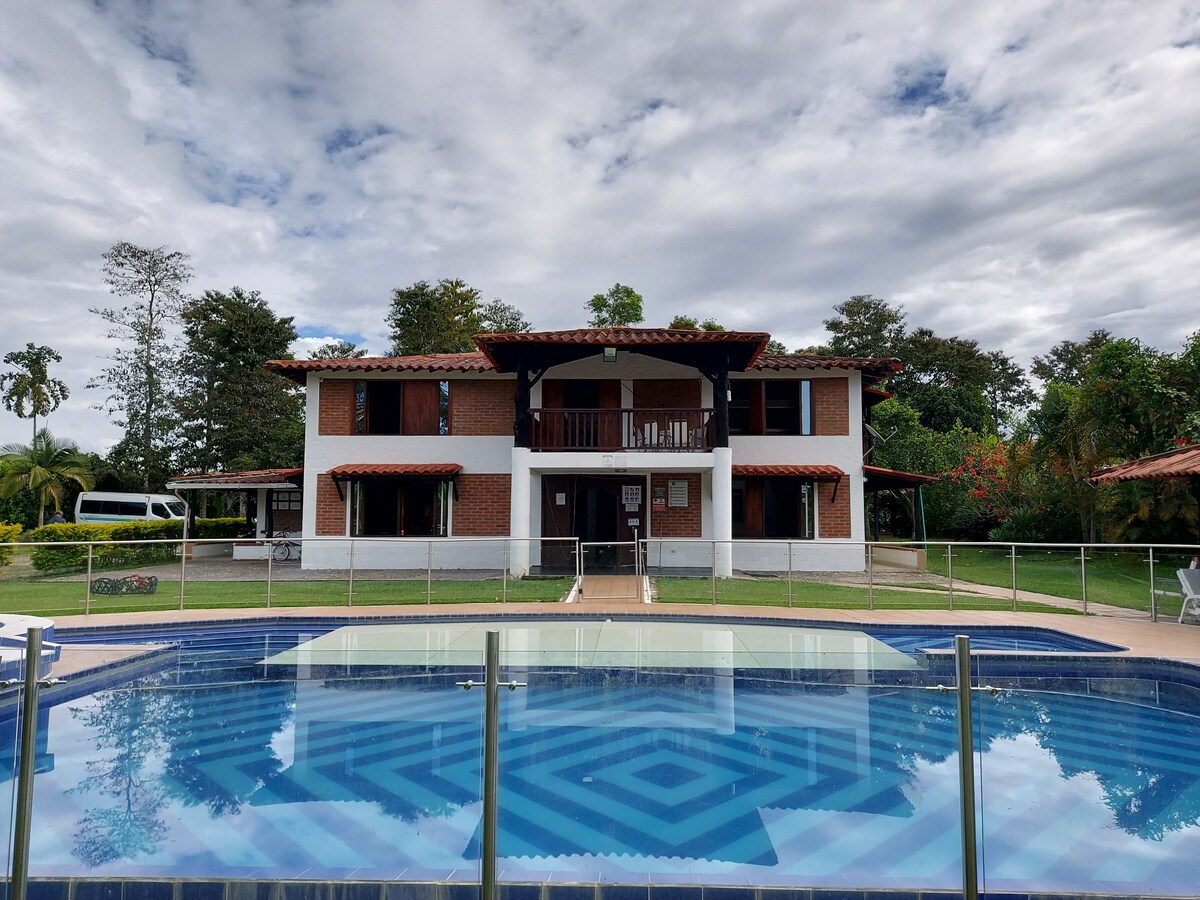 Spectacular country house in Quindío, excellent location 4 KM from Panaca Park and very close to the different tourist attractions in the region. The entire house is rented with a maximum capacity of 25 people, large green areas, kiosk with pool billiards, BBQ kiosk, swimming pool, jacuzzi, tv, wifi. ease of transportation extraordinary climate surrounded by nature. the ideal farm for holidays with your family or friends. Come and enjoy the coffee region "SOL Y LUNA IS WAITING FOR YOU"