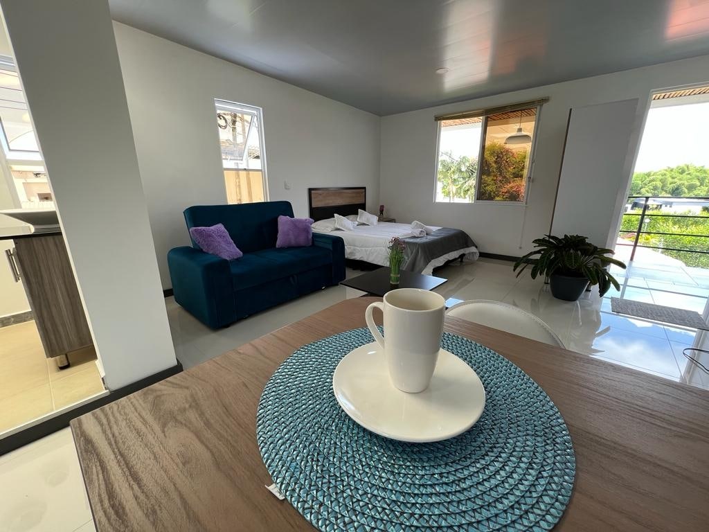 Cozy Loft in Soho Building - in the Castellana neighborhood. Enjoy a quiet and illuminated space, close to supermarkets, shopping malls, clinics and gastronomic area in the city of Armenia. The unit has a spacious room, fully equipped kitchen, washing machine, hot water, 300 Mops Wifi, Smart TV and an excellent view of the mountains. The building has 24-hour concierge, elevator, supermarket, outdoor parking. Registration number 217986