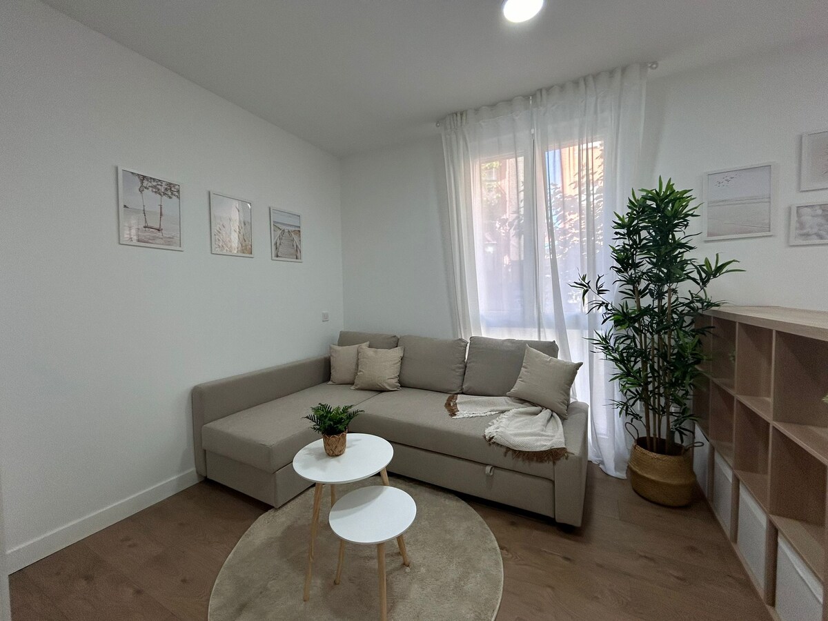 Beautiful newly renovated apartment, with good qualities. With a wonderful patio that you can enjoy almost all year round, where you can have breakfast and breathe tranquility. Decorated with great care, in a practical and elegant space. In a prime location, with public transport (metro and bus) a 2-minute walk away, direct to the city in 15 minutes. A shopping center and supermarket are a 2-minute walk away, and there is free street parking, without parking meters.