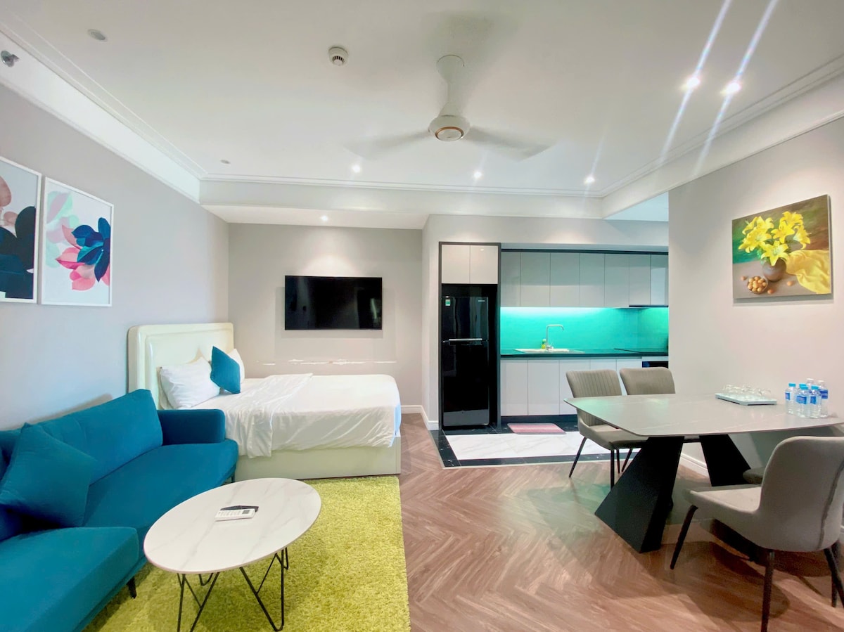 One-bedroom Studio Apartment in Quy Nhon's tallest TMS building. - Apartment with sea view. - The building is located in the center of Quy Nhon, 50m from the sea. - The surrounding area has many seafood restaurants and beach cafes. - 45m2 apartment with a large balcony overlooking Quy Nhon beach. TMS Quy Nhon Building is a great destination for visitors to have a relaxing time here,