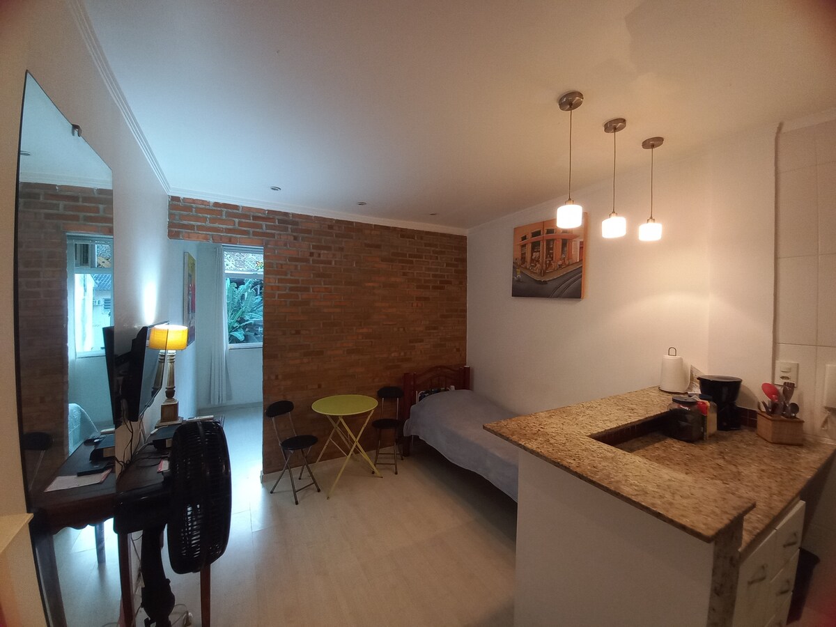 O apartamento é super aconchegante e fica junto ao Metrô General Osório (saída D). Meu espaço é bom para casais, aventuras individuais e famílias (com crianças).Nosso espaço oferece conforto para seu descanso ou para sua estadia a trabalho. Queremos que você se sinta como se você estivesse na sua própria casa. Estúdio totalmente privativo e acomoda confortavelmente até 3 pessoas. Temos uma cama de casal e uma de solteiro