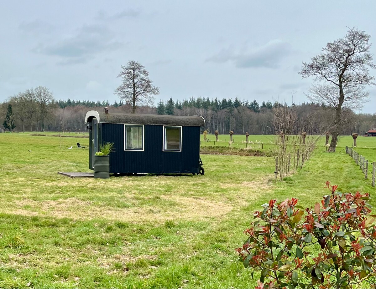Only 300 meters from the built-up area of Raalte in the countryside, you can relax in this quietly located, stylish new B&B. The area is great for beautiful cycling and hiking trips. The 25m2 B&B has all the comforts. Looking over the meadows with sometimes sheep or hares in front of the door, you will relax in this B&B, equipped with a large robust double bed, a beautiful bathroom, and a small kitchen. There is a charging station for your electric car.