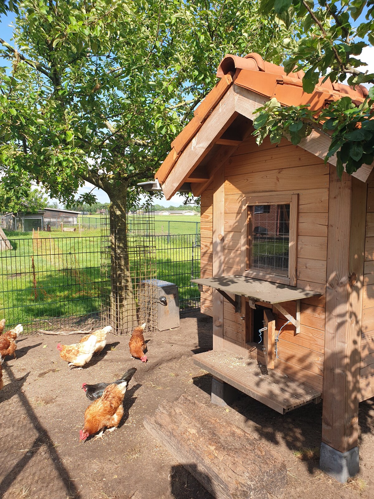It is a separate annex to a farm that is no longer working. We do have 2 Hereford cows and sometimes some extra cows in the meadow. And Snoopy (our dog) is present, but on request he stays inside. Snoopy is a young dog. Suitable for 2 people who can walk stairs. (Beds upstairs) Equipped with dishwasher, washing machine, TV, private WiFi, private entrance and private terrace. In the chicken coop, there are four chickens and no rooster.