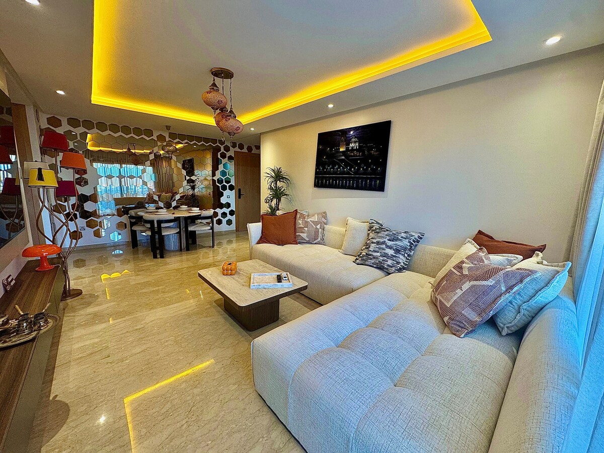 Your home in the heart of Meknes! ✨ Discover this beautiful apartment, a peaceful haven combining modernity and local charm. Perfect for families, couples and business travelers. 🌇 Enjoy the unique panoramic view from the balcony. 🎬 Relax in the evening in front of the 65" Smart TV (Netflix, Disney+). 🔑 Enjoy fast Wi-Fi, a fully equipped kitchen and a free garage. 📍 Perfect location to explore everything on foot. 🚭 100% non-smoking apartment. Simplified check-in.