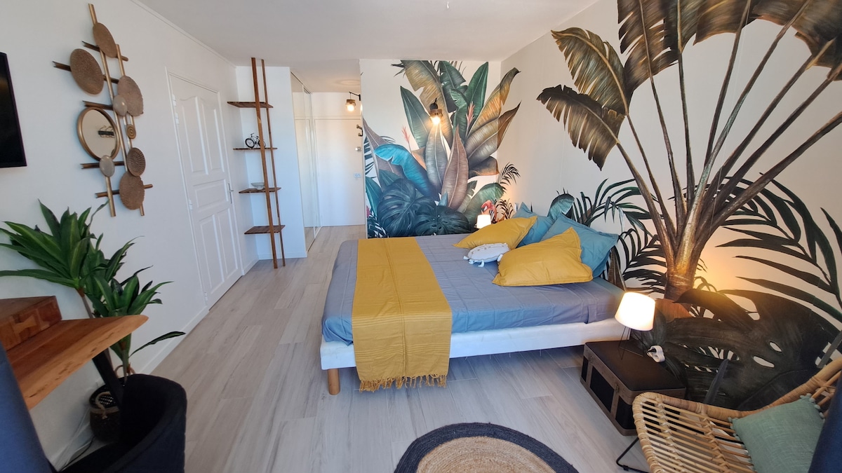 Cozy air-conditioned sea view studio 2 minutes from the beach
