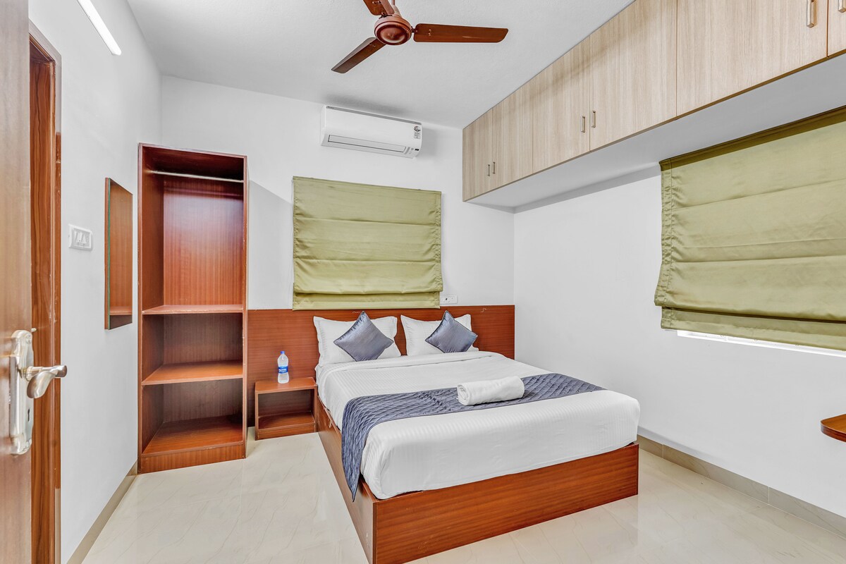 A cozy stay in the heart of Chennai in Nungambakkam. This 200 sq.ft room includes a comfy double bed, private bathroom, work desk, and a compact kitchenette. Located near Apollo Hospital, the American Embassy, Khadar Nawaz Khan Road, and T. Nagar, it's perfect for business travelers, medical visitors, and shoppers alike. Enjoy comfort, convenience, and easy access to Chennai’s key landmarks.