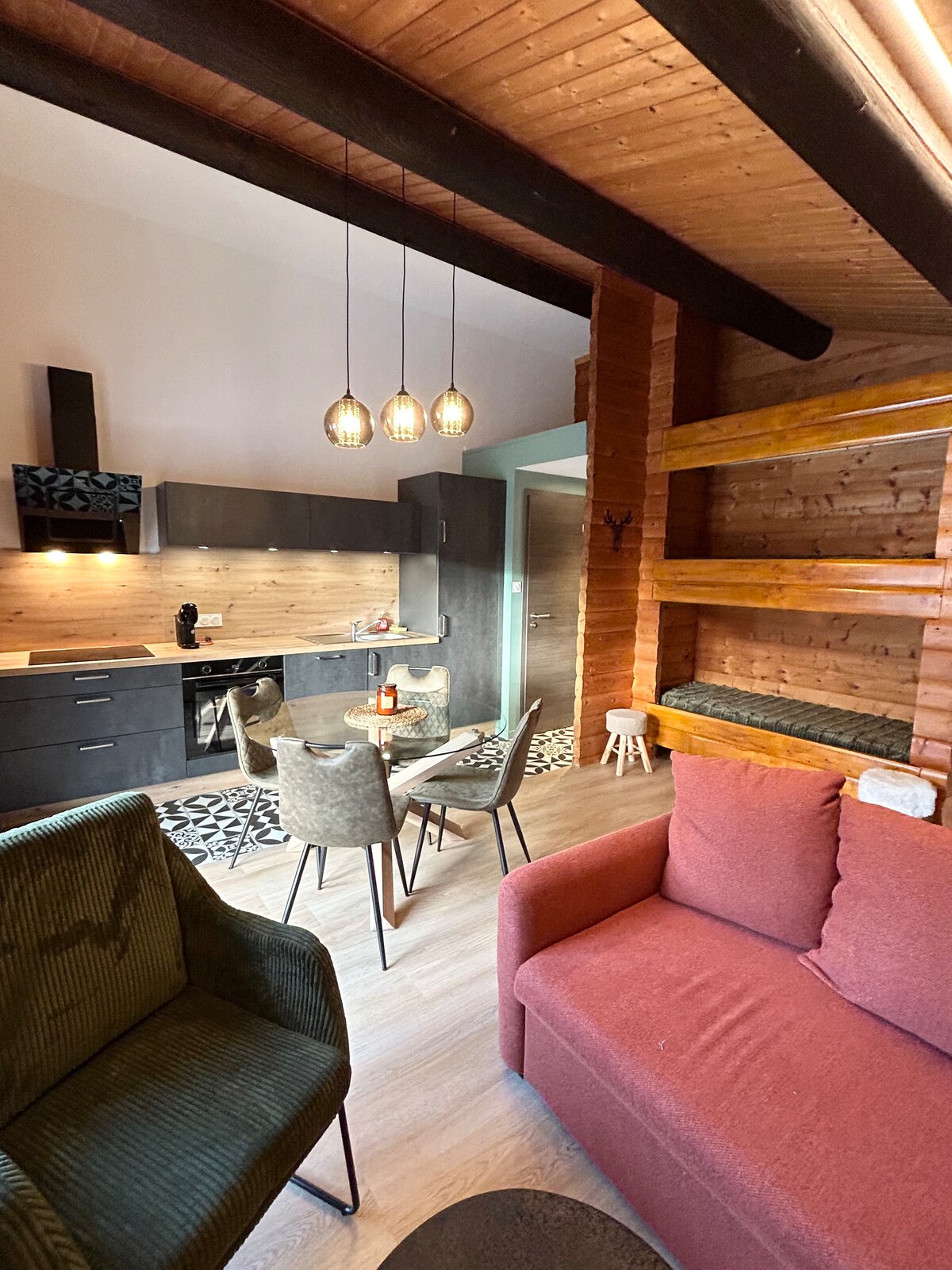 ✨ A cocoon nestled in the heart of nature Here, time stretches to the rhythm of the wind in the trees. The chalet invites you to slow down, savor the moment and listen to the silence... sometimes disturbed by a curious deer at the edge of the woods. On the terrace, a steaming spa envelops you facing the soothing landscape. Inside, soft light, natural wood and fluffy bedding make up a comfortable refuge. A haven to reconnect with the essentials... and with yourself. 🌲💫