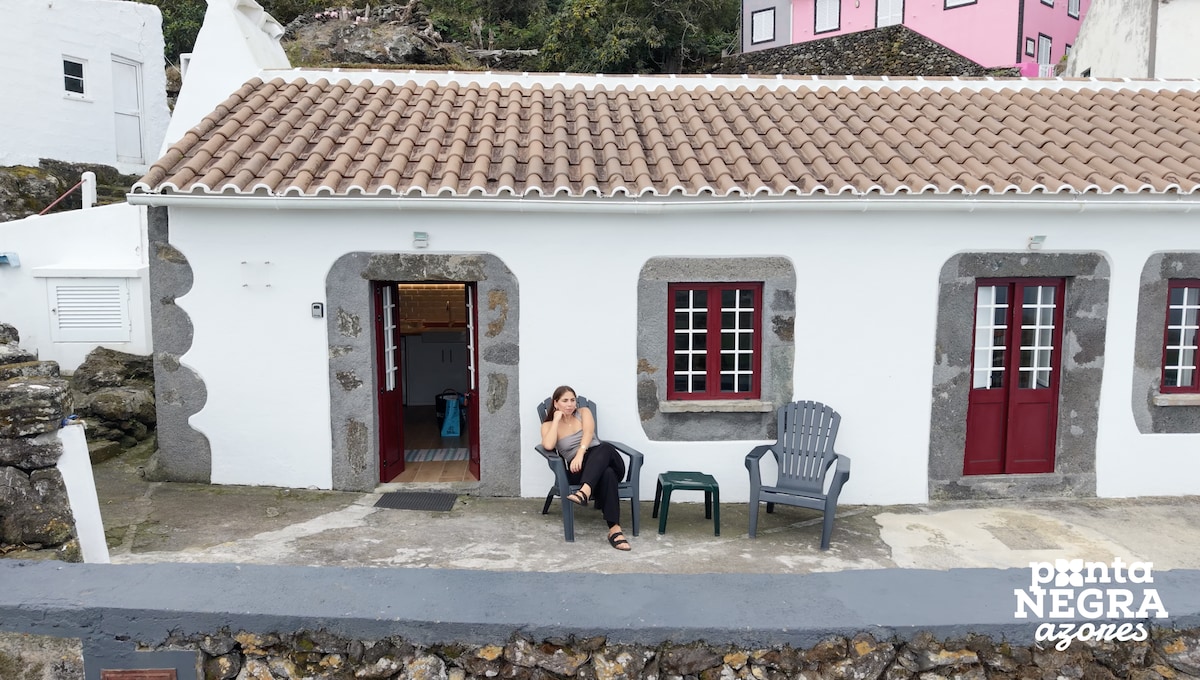 Recently rebuilt house, located in one of most beautiful bays in the Azores. Nestled on the slope of the Quatro Ribeiras, it offers a unique view of both the sea and the rocky escarpment of the bay. Fully equipped with two bedrooms (one suite), two bathrooms, an open concept kitchen and living room, heating stove, balcony and outside space with barbecue and fire pit. Free private parking. Clean and Safe seal. Get ready for an unforgettable stay!