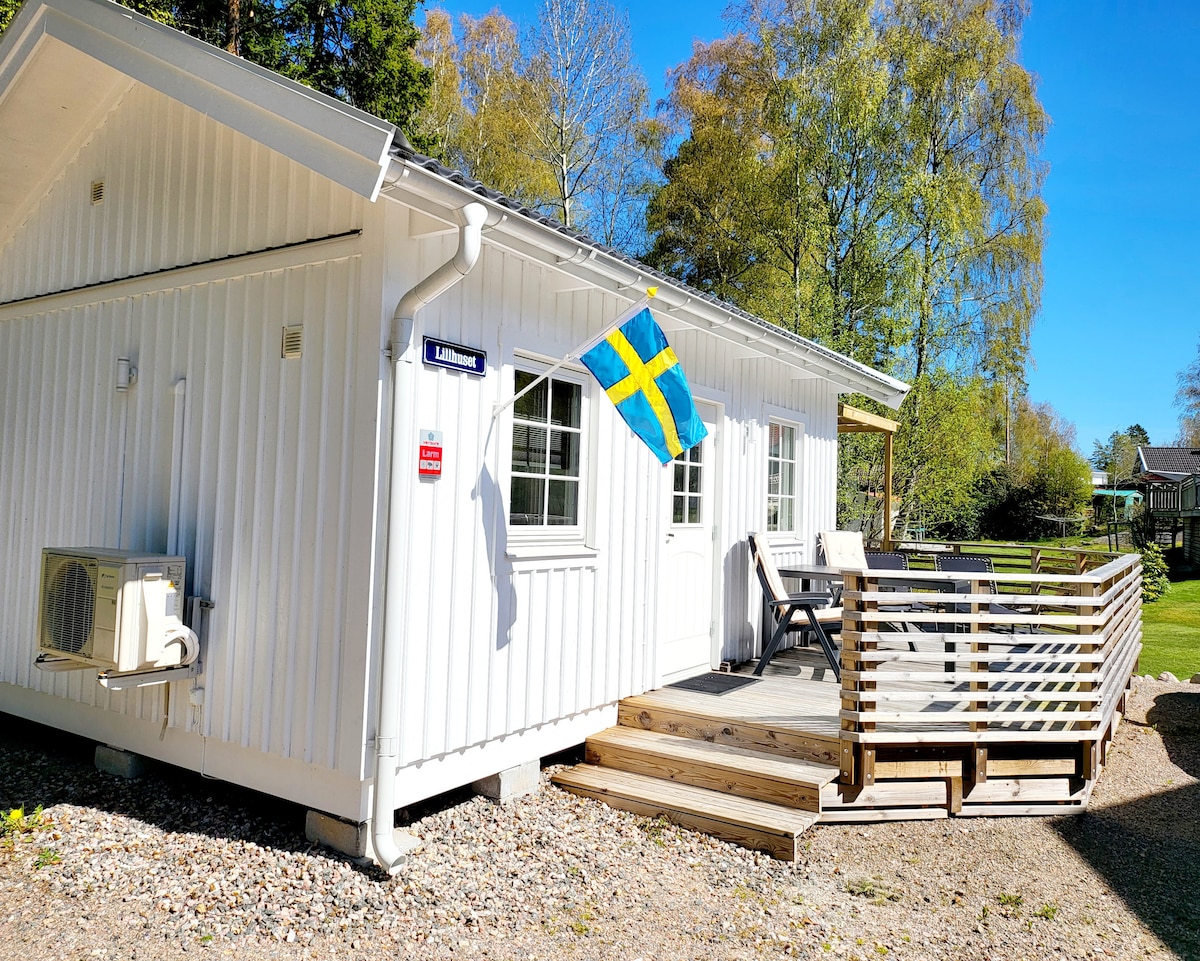 Stylish and incredibly cosy little cottage measuring 25 m², built in 2021, in a quiet and beautiful location in Ammenäs/Stången, close to woodland, nature and hiking trails, and within walking distance of swimming spots in both summer and winter. The cottage has a parking space and also a patio, which in the summer (June–August) is equipped with lounge furniture, sun loungers and a barbecue. Close to Torp shopping centre and Uddevalla town centre. In the local area of Bohuslän, there are also plenty of great places to visit, restaurants, shopping, interior design stores, and activities such as padel tennis and golf.