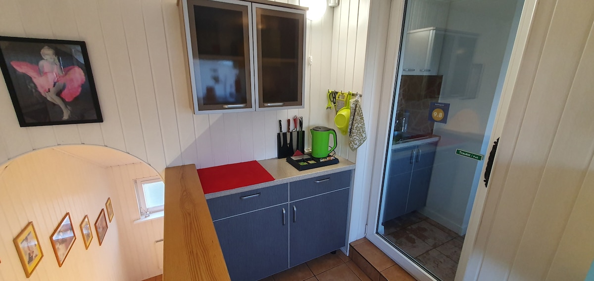 Unique two-level loft with a cozy terrace and peaceful surroundings. Perfect for a relaxing stay, city break or recovery near Kaunas clinics. Enjoy a bright living area with large windows overlooking a peaceful garden, a cozy lounge terrace with string lights, and a beautifully designed bedroom under wooden beams. Conveniently located near the city center and major clinics, this loft offers easy access to shops, cafes, and public transport.