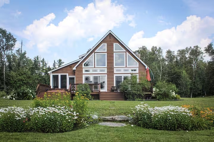 On Rt. 4 w/ stunning 280º west sky views of pristine Rangeley lake. 78 ft. deck. 2 mi to town. Hear the loons at dusk & dawn. Deer run thru yard & eagles over house. June /Jul - Lupines & Poppies Jul/Aug blueberries, apples in Fall. Open kitchen/living area. Fish, hiking trails, downhill/X- country skiing, snowmobile, fat bikes, 4 waterfalls, bowling, billiards, leisure walking in town. Rangeley Fitness Ctr w/Indoor Pool/Gym/Yoga. FREE AV Charging in town. Movie theatre.