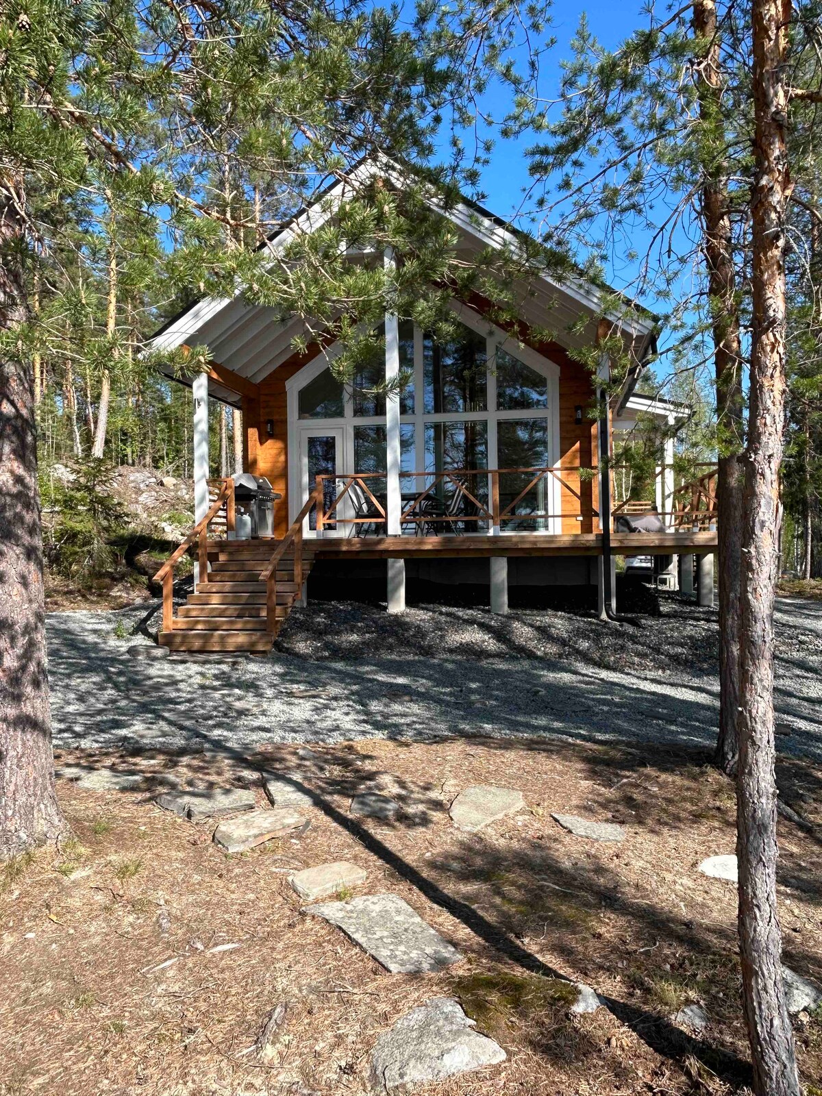 Tyylikäs ja kauniisti sisustettu 100m2 huvila, jonka isoista ikkunoista avautuu mieletön järvimaisema. Hyvin varusteltu talo, isot terassialueet, rantasauna ja ulkoporeallas (lisämaksusta). Moderni avokeittiö, ruokailutila, iso olohuone, 2 makuuhuonetta, nukkumaparvi kahdelle ja wc/kylpyhuone. Beautiful villa with amazing lakeview. Well equipment house, large terraces, lakeside sauna and jaguzzi (for extra fee). Modern kitchen, diningspace, livingroom, 2bedrooms, sleeping loft for 2, bathroom.