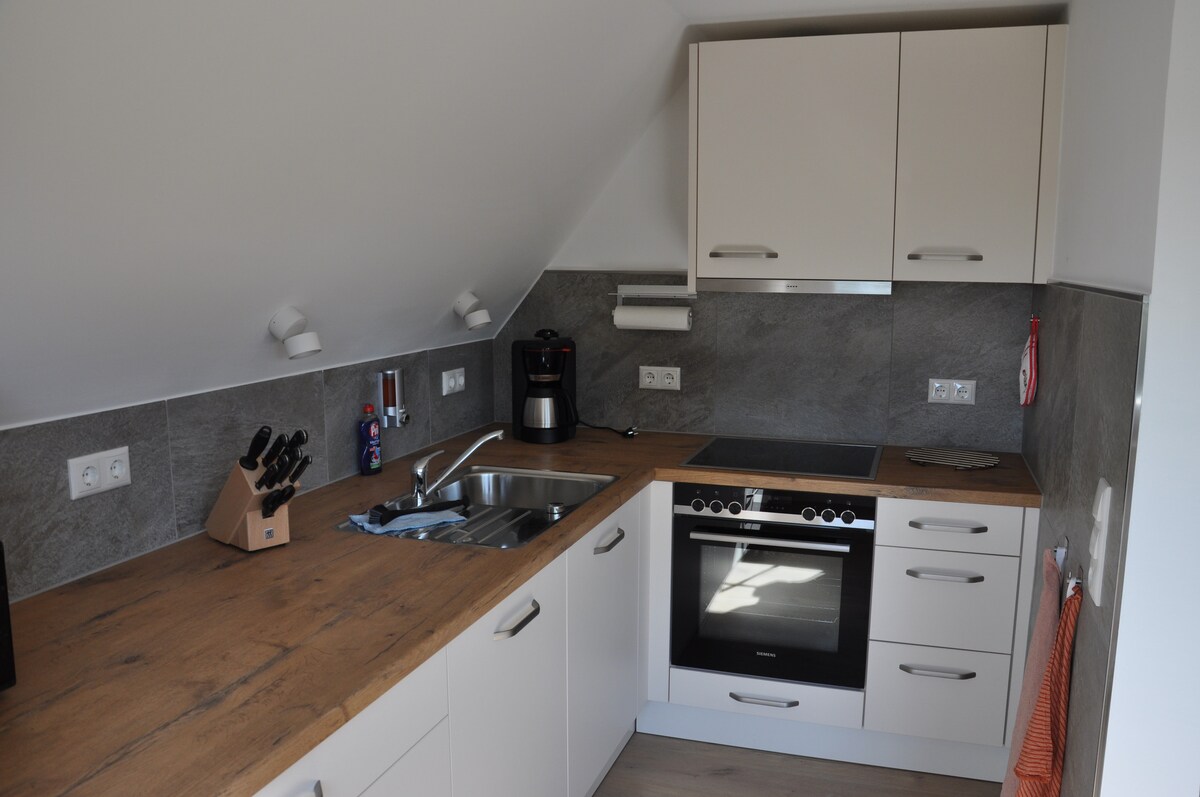 In the closed area of our house. Pleasant atmosphere through clay plaster + wood; beautiful surroundings, very quiet. and close: Ratzeburg (car 5 min), Lübeck (car 20 min). One bathroom; only ONE fast induction hotplate, simple cooking, fridge, Wi-Fi. Double bed (160 × 200). Additional table + chairs in the garden. Free bikes. Bus on B207 junction Buchholz. Very fast to the lake, boating. No animals, no smoking. Limited telephony in the house due to clay plaster depending on the provider.