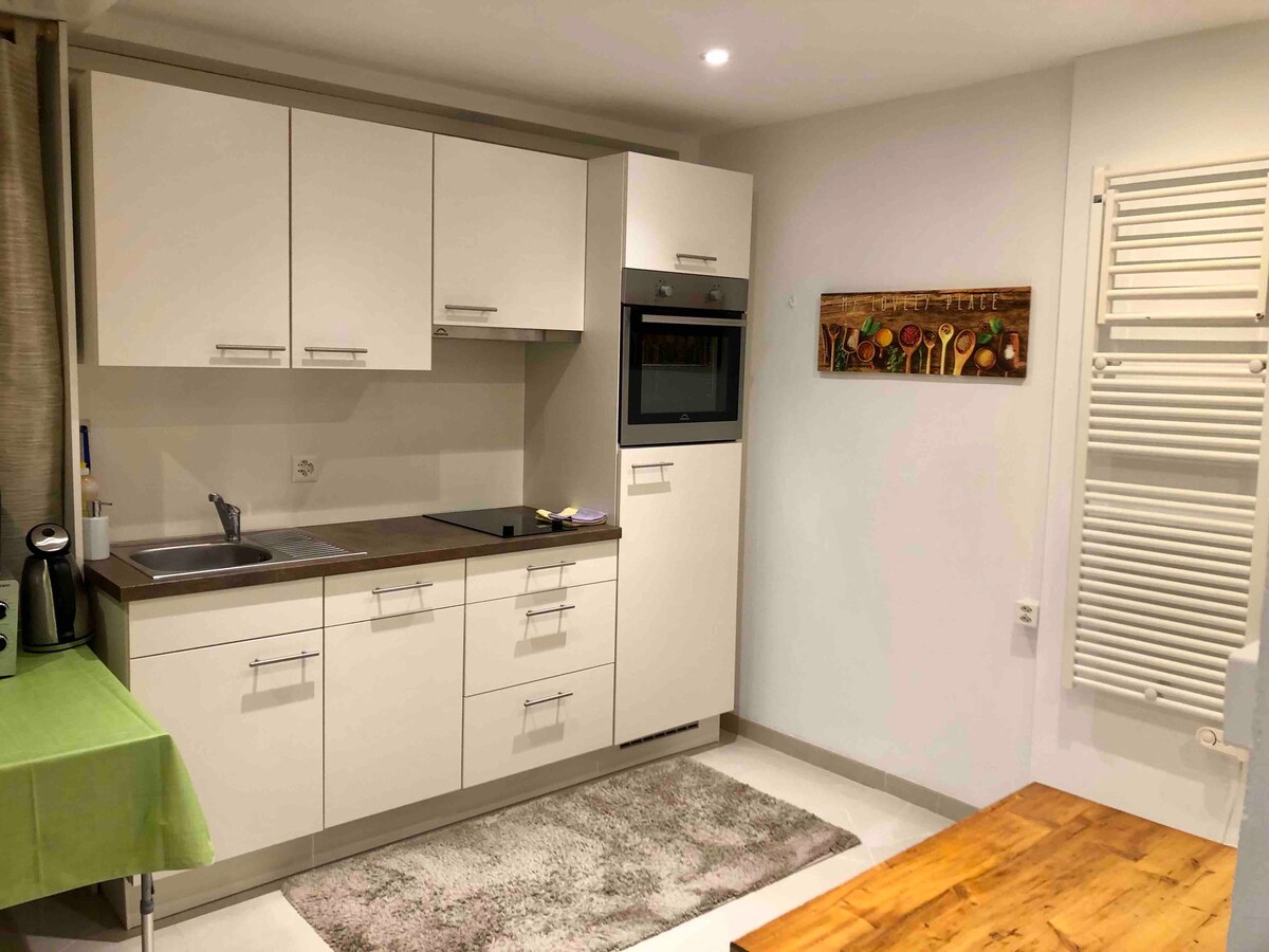 We rent a very nice, newly furnished and cozy 30 m² apartment with separate bedroom. In the open living room with kitchen and dining area, there is a large sofa bed. The apartment has a separate apartment entrance and is on the first floor (no steps). The free parking is right next to the apartment. The apartment is located in the middle of the village and is easy to find. Just three minutes to the bus stop, 40 minutes to Zurich. We, the host family, live on the upper floor.