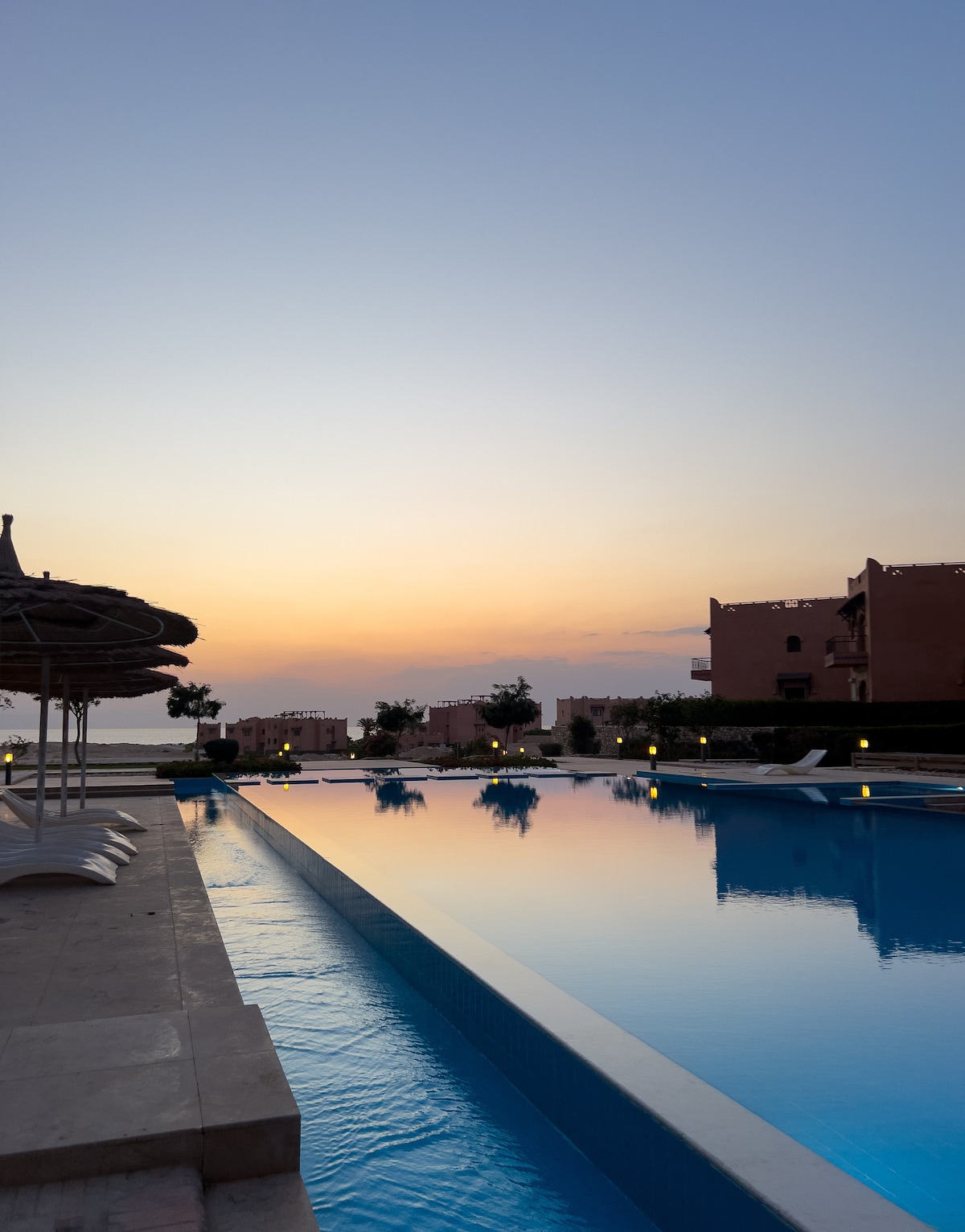 Welcome to our boho beach retreat in La Hacienda for those seeking relaxation & calm. This place has all the amentities you’ll need. La Hacienda has loads of amenities; pools, beachfront cafe, restaurants, kids playground, tennis & padel courts. The beach & kitesurfing is recommended! The newest pool is a minute away! Note on weekdays construction’s ongoing for the newest phase & there’ll be workers in view & it might be noisy during working hours. (No Egyptian mixed groups per local laws)