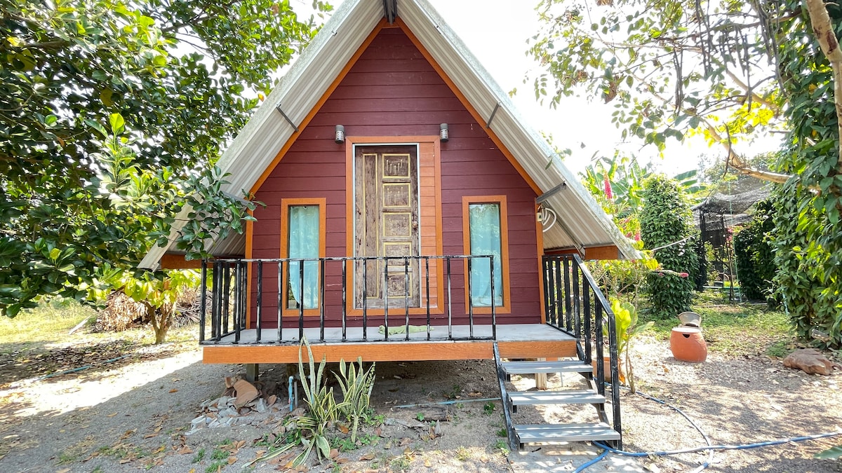 A quiet, no-frills mini cabin for solo travelers looking to disconnect. Set on our peaceful farm just 1.5 hrs from Bangkok, this cozy space sleeps 1 and offers a fan, bed, and access to shared outdoor showers and toilets. Surrounded by trees, farm animals, and open sky, it's perfect for a restful nature escape. Enjoy common areas, campfires, and slow mornings. Breakfast with coffee, Thai or Indian dishes can be pre-ordered. A back-to-basics countryside retreat.