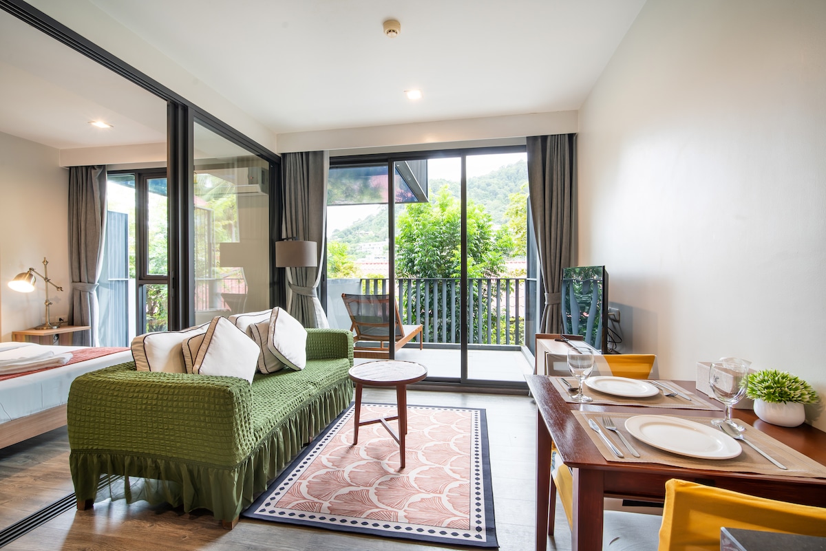 ‼️Not a hotel‼️ Phyll Phuket offers the perfect blend of city convenience and beachside tranquility. Relax and unwind in our expansive sandy central courtyard. - Largest and best common space in the area, private and secured - Unique 1 BR layout with the best view from balcony and bed room. - In-house private hi-speed WiFi. - Free transport to Central Phuket Floresta shopping mall. - 10 minutes ride to Phuket Old Town - 15 minutes ride to Patong Beach - 5 minutes ride to King Power Phuket.