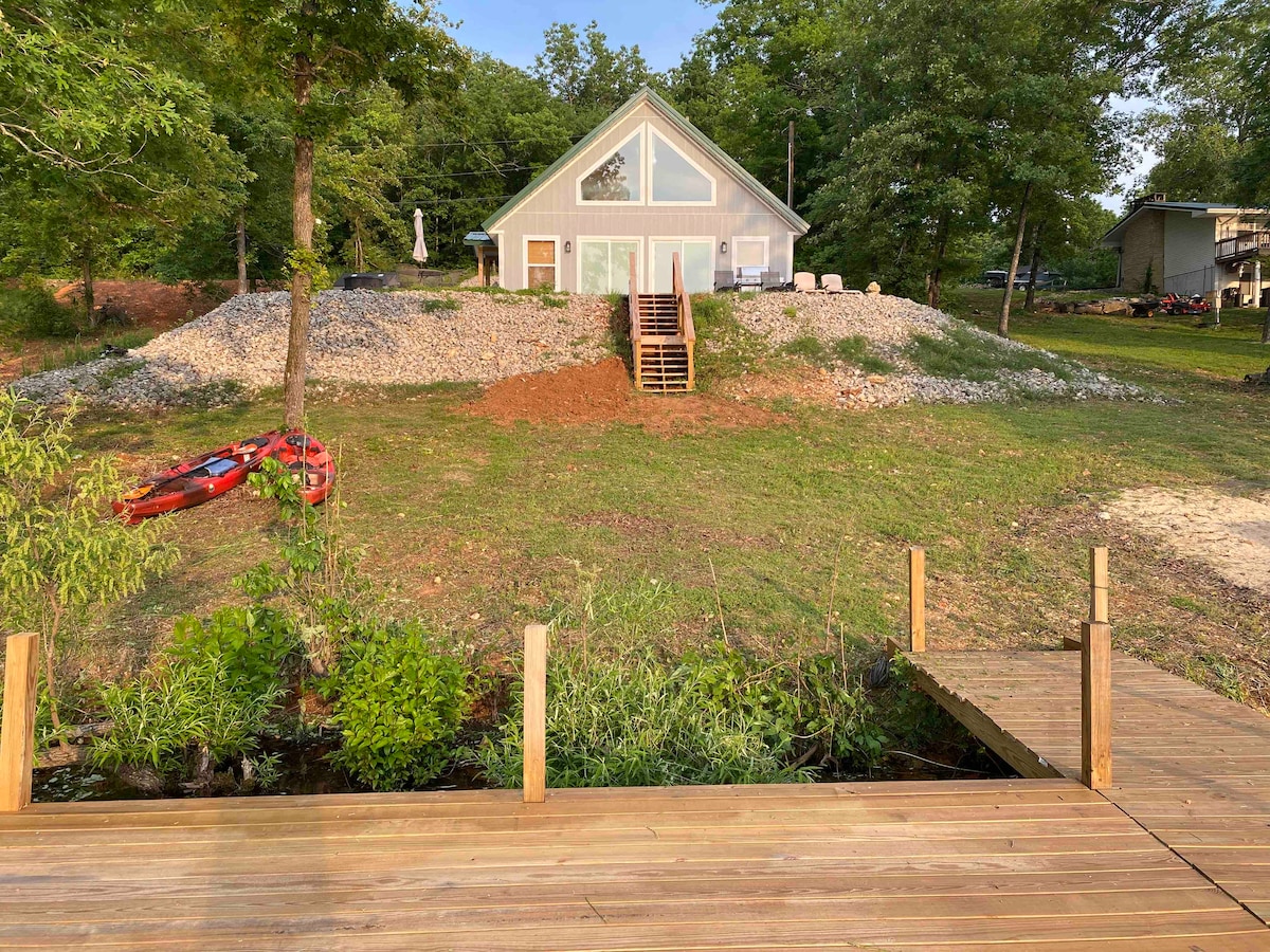 Leave the city behind, escape to Hardy and enjoy Kiwanie Lake, just 2 blocks from the Southfork of the Spring River. Our a-frame cabin is great for one, two or three people. Or, add it to your larger group renting our house next door (Hardy Lakehouse Lilypad)! Enjoy your own dock on the lake or paddle and fish the rivers close by. Kayaks for the lake are included with your rental. Conveniently located just 2 miles to downtown Hardy or Cherokee Village. Walmart close by for easy shopping.