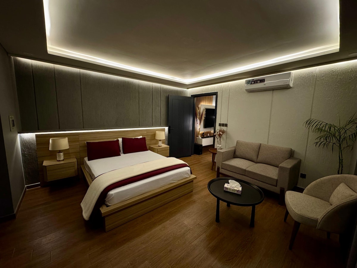 Experience modern, dark-toned elegance in the heart of F-11 Markaz, Islamabad. The Slate Suite is a refined one-bedroom apartment designed for guests who appreciate clean aesthetics, calm surroundings, and a prime central location. Ideal for professionals, couples, and solo travelers, this thoughtfully curated space offers the perfect balance between city convenience and private comfort.