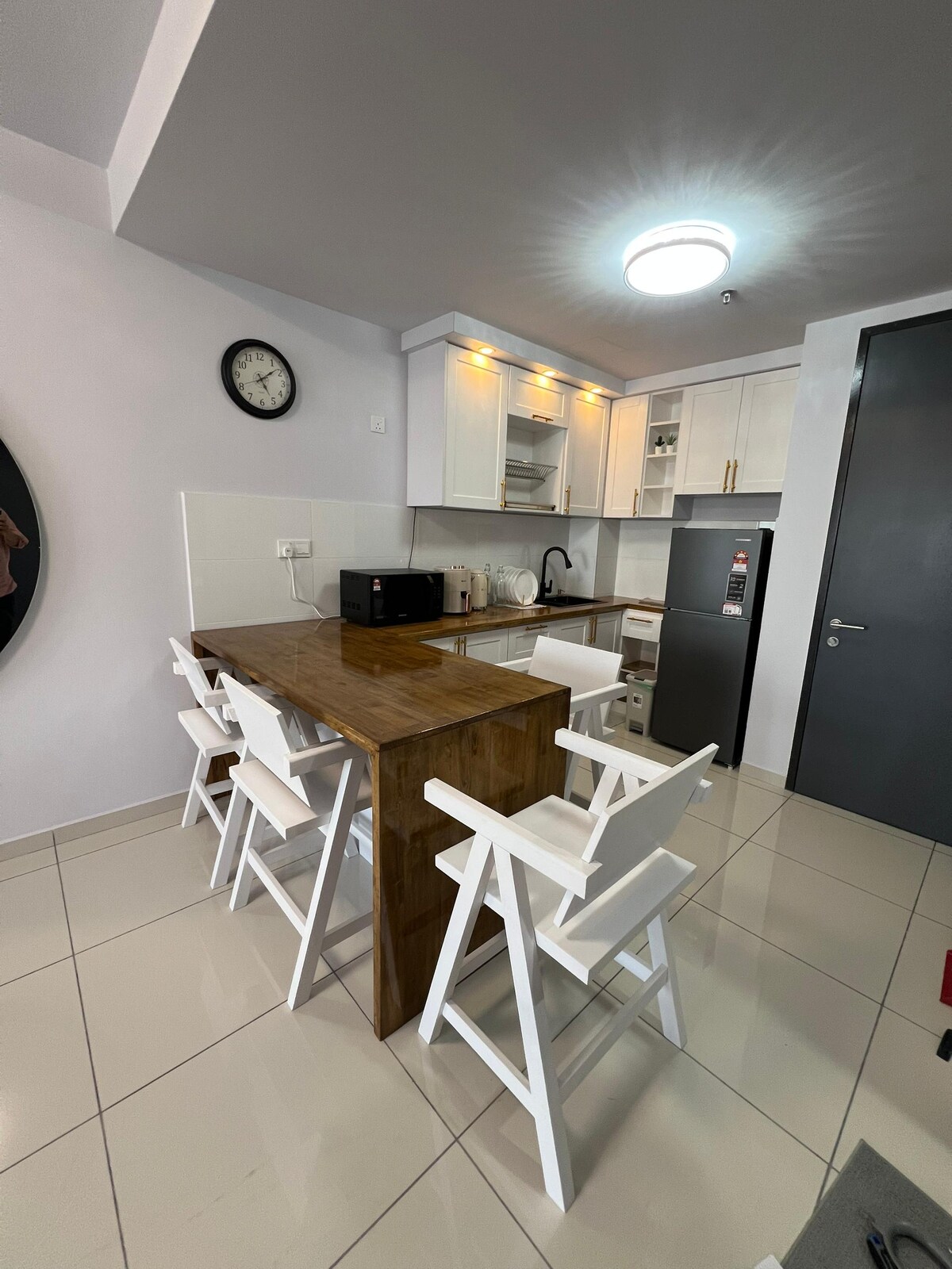 Welcome to your stylish urban oasis in the heart of Gamuda Gardens, Rawang! Experience the perfect blend of modern luxury and natural beauty in our contemporary apartment, just moments away from Skyline Luge Theme Park. Enjoy a stylish living space with a 65-inch TV, fully equipped kitchen with induction cooker, two bedrooms, and two bathrooms. Book your stay today and experience the best of urban living combined with the thrill of the Skyline Luge Theme Park!