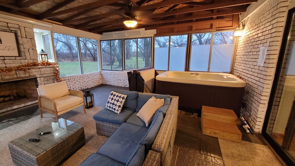 Nestled in the heart of Ray Township, MI, this farmhouse offers a peaceful retreat on 15 acres of private property. Perfect for quiet gatherings such as family reunions, artist retreats, leadership retreats, and wildlife watching. Enjoy multiple living spaces, including a three-season sunroom and a cozy fireplace for great conversations. There's also a game room dedicated to the kiddos. Experience tranquility and comfort in this unique and serene setting.