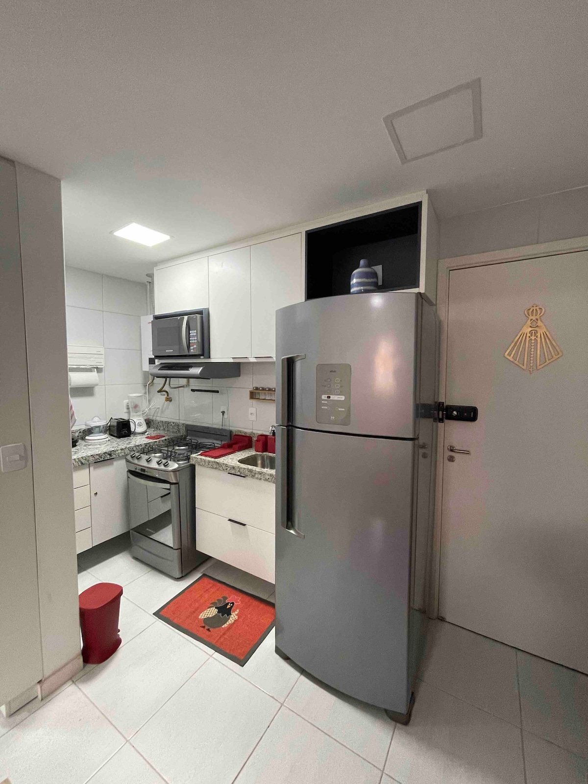 1-bedroom apartment with double bed and living room with availability for 2 mattresses. Apt. on the 3rd floor with a small view from the window (in photos), living room and kitchen with basic utensils for a short stay. The price includes the cleaning of the rooms. Does not include bed and bath linen fee, which is R$25.00 per person for the period. Electricity is paid at the end of the stay. The security deposit is requested at the front desk and refunded at check-out after deduction. Welcome to our vacation home @Brazil apartments Recife.