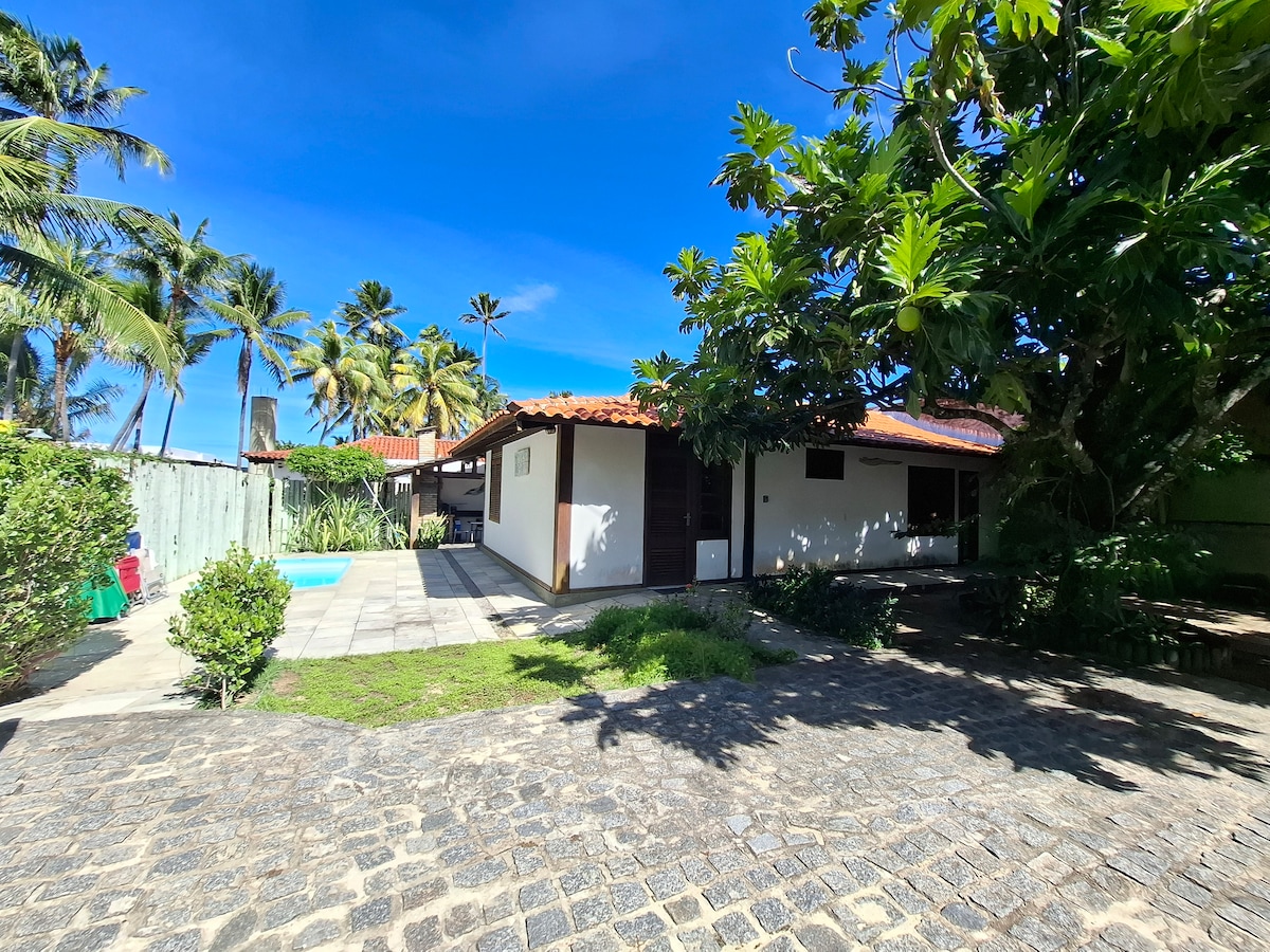 Relax with the whole family at this peaceful place to stay, near the sea. Family home with swimming pool, large and spacious terrace. 4 equipped bedrooms, 3 with air-conditioning, full kitchen, living room and laundry area, Wi-Fi, security camera, electric fence, water from the well and artesian well. 400 meters from the beach, close to restaurants, market, police station, UPA (Emergency Care Unit), gas station. We do not have bed and bath linens, it accommodates 10 people well. Space for 10 people.