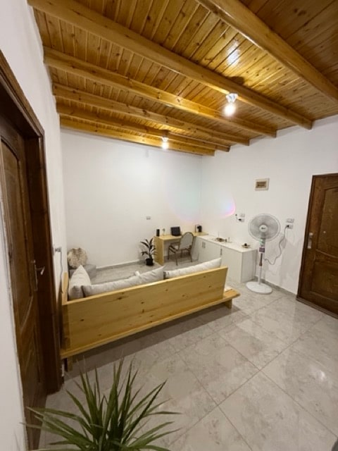 This special place is close to everything, making it easy to plan your visit and it a beautiful view and green concept. The interior design is super deluxe and smart with a work space, and equiped kitchen and and comfortable bedroom. The the bathroom is tiny but it's nice while everything you need including a strong hot shower with a mountain view A wonderful balcony surrounded by the trees and Dahab unique atmosphere. The experience is totally different than any place and it's brand new)