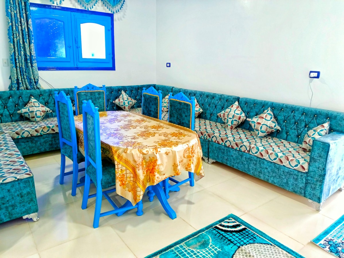 In this place, you'll love the most fabulous breathable air and enjoy the most amazing unique high views of the sea and mountains in Dahab. Whether you're working at your comfortable desk or relaxing on your spacious terrace, this place has it all. Also, it's conveniently located in the center of Asala, Dahab, only a short 10-minute walk from the beach. Please note that, the sleeping arrangements are only 2 single beds, and there are extra couches on the outside terraces areas
