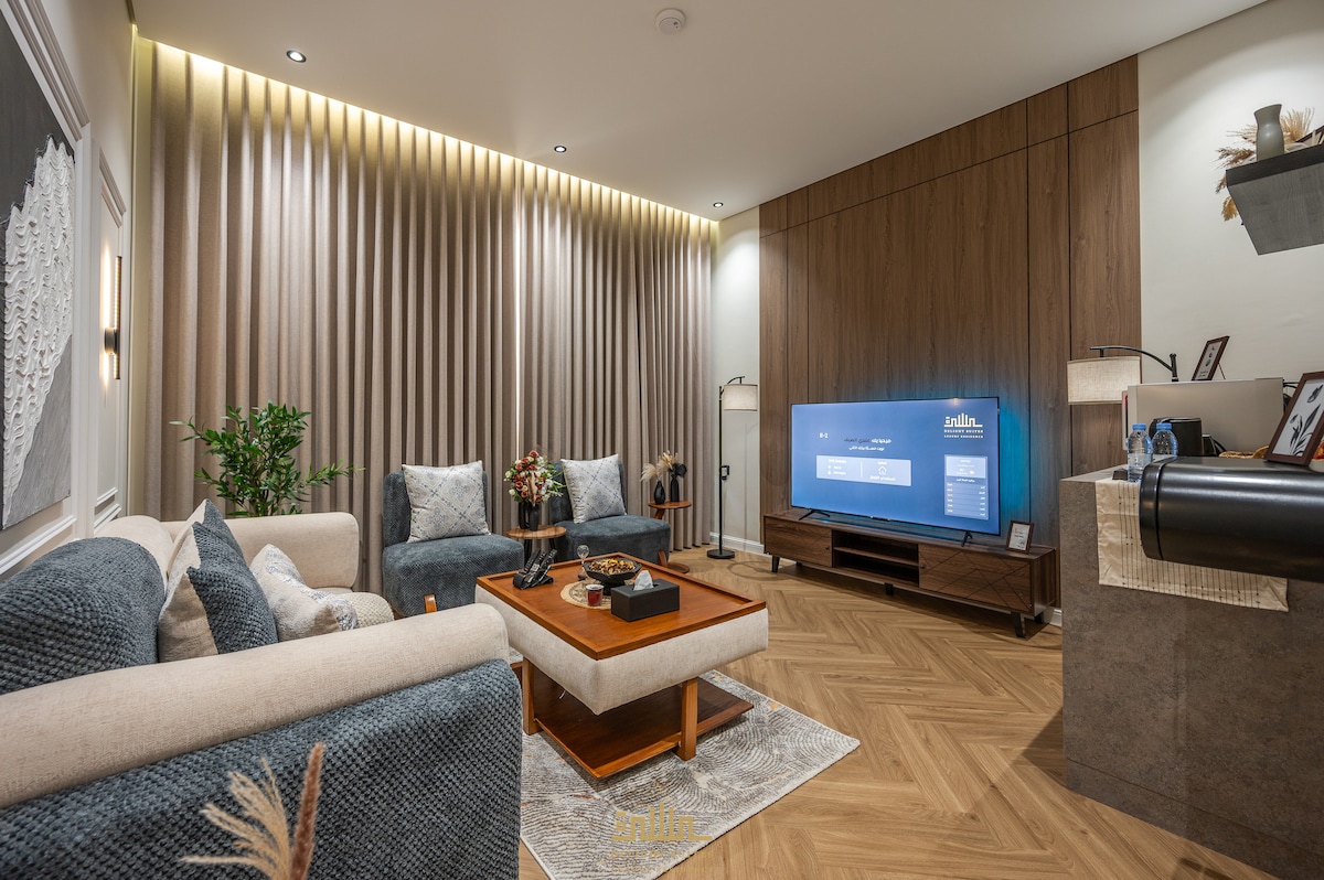 استمتع بإقامة فندقية فاخرة في قلب حي النهضة الراقي. شقة أنيقة تتكوّن من غرفة وصالة بتصميم عصري، تضم كرسي مساج فاخر ومكتب أعمال مريح، وشاشة بحم 75 بوصة وبموقع متميز قرب البحر والمطار وطريق الملك وجميع الخدمات الحيوية. - Experience a luxurious stay in the heart of Al Nahda, Jeddah’s most elegant district. This stylish one-bedroom apartment with a living area features a premium massage chair and a comfortable work desk, ideally located near the sea, airport, King Road, and all major attractions.
