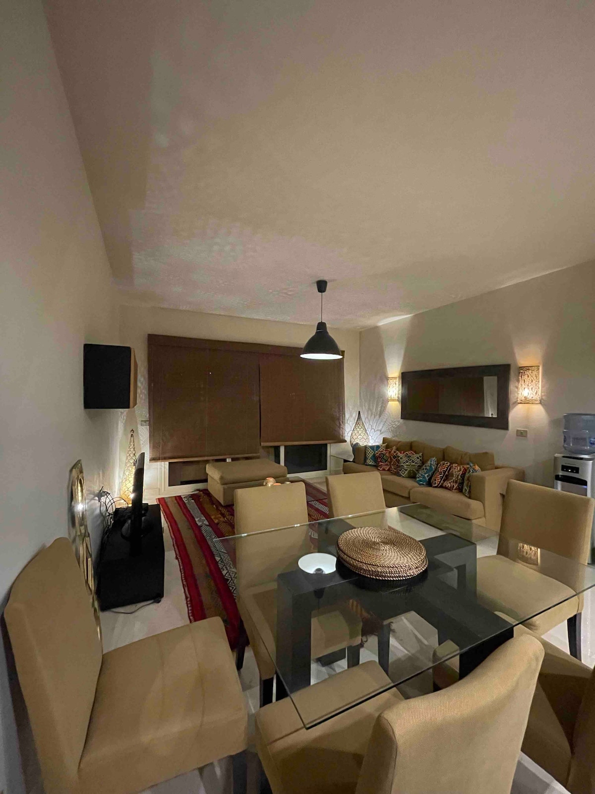 Fully furnished & equipped 2-bedroom apartment for rent in Hurghada in a beachfront resort with its private beach The resort has 24/7 security Close to all services, 10 minutes to El Gouna 10 minutes to Dahar Square Please note that the price does not include water and electricity. The Internet is for long-term one month or more Also, the internet does not include the price of the rental