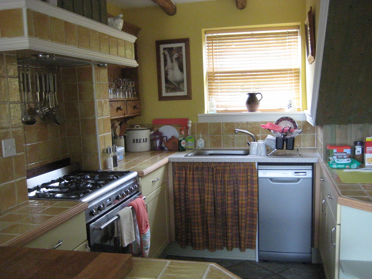 This self contained holiday cottage offers a chance to get closer to the workings of a family dairy farm. It is situated in the North York Moors National Park, midway between the moors and the coast and just a fifteen minute drive (or slightly longer bus ride) from Whitby. The accomodation is unusually spacious for a one bedroomed cottage, it is light, warm and very well insulated but don’t forget there is the potential for noise and smells from the farm!