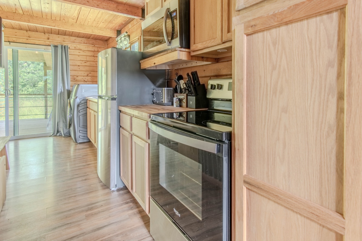 Welcome to the Hideaway Cabin, where you can unwind in the embrace of nature. Here, you can sizzle your favorites on the grill, lounge in the Adirondack chairs on the balcony, or simply relax indoors. Come evening, gather by the firepit on the porch to watch the fireflies dance or relax in the hot tub on the back porch. It's the ideal blend of natural serenity and homely comfort. In the winter, cozy up by the woodstove in the living room and catch up on your favorite TV shows.