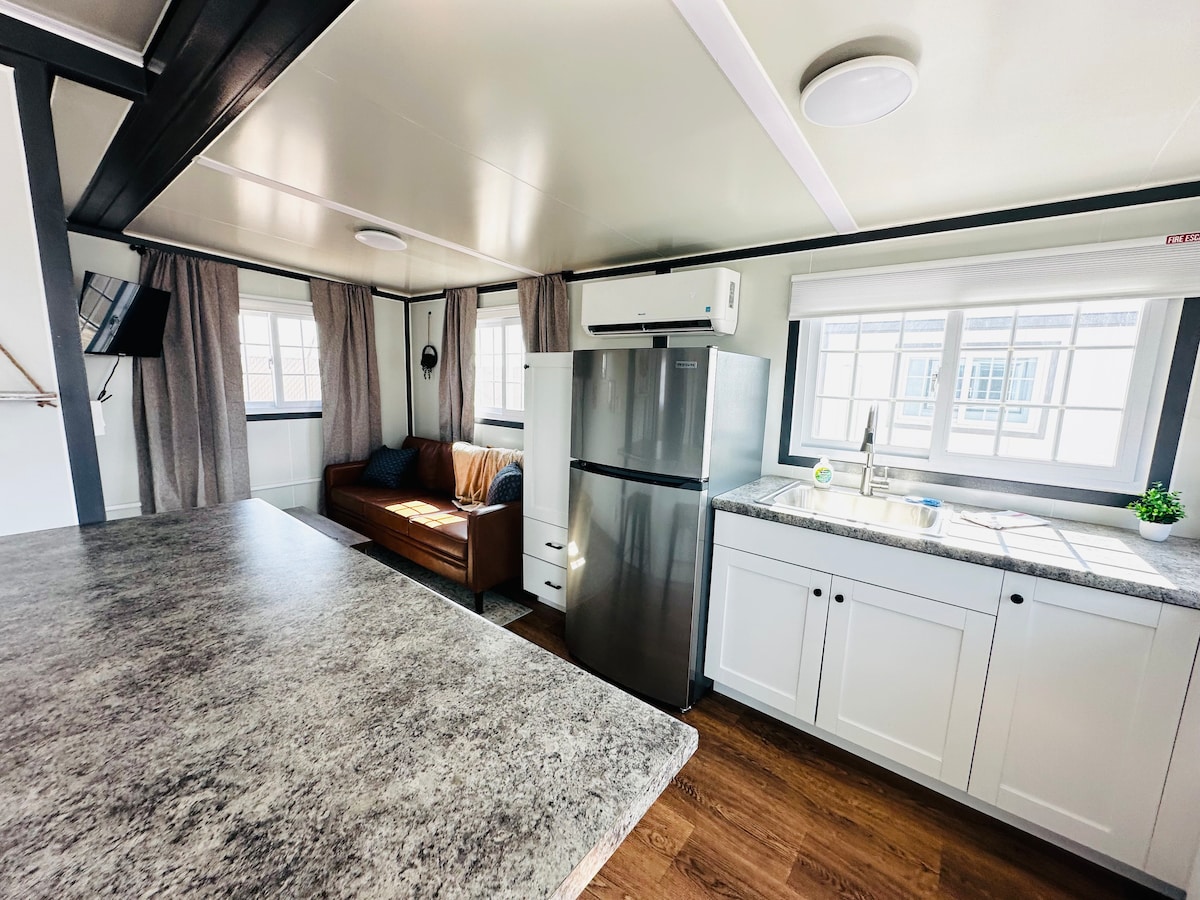 In the heart of oil country, this BoxHouse exudes an inviting atmosphere, with privacy and comfort. You can cook like a chef in the full kitchen, unwind in the living area, clean up in your own private bathroom, and retreat to your secluded sleeping quarters. The attention to detail goes unmatched, and the added conveniences like your own washer and dryer, modern appliances, free WiFi, and instant-hot water ensure a seamless and hassle-free lifestyle. Come stay, we’d be honored to have you!