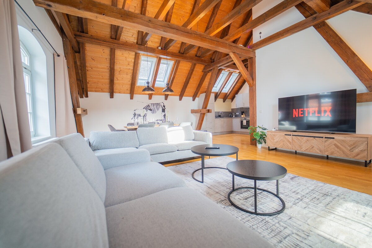 ☆ WILLKOMMEN BEI LUXOMES ☆ Diese frisch renovierte 3,5-Zimmer Wohnung ist perfekt für 7 Personen und zeichnet sich durch ihr Urban Design aus. → 24h Check-In → Zentrales Altstadt Apartment → 2 Queensize Boxspringbetten, 1 Einzelboxspringbett & Premium Schlafcouch → 65 & 55 Zoll Smart-TV → Voll ausgestattete Küche mit Spülmaschine, Waschtrockner → Nespresso Kaffeemaschine → Meßmer Premium Tee Selektion → Netflix, Disney + & PayTV, Highspeed WLAN