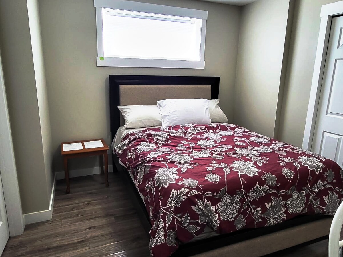 Enjoy the comfort & convenience that this cozy basement suite offers in the quiet Greens area. Make some memories at this unique & family-friendly villa. It is 5 mins drive from Costco & 8 mins drive from Walmart & Superstore. This super clean space has comfortable queen-sized bed & free parking. It has high speed internet 325 Mbps Wifi, 40'' smart TV including prime video and netflix access. Kitchenette has essentials such as microwave oven, refrigerator, hot water jug, coffee maker, toaster.