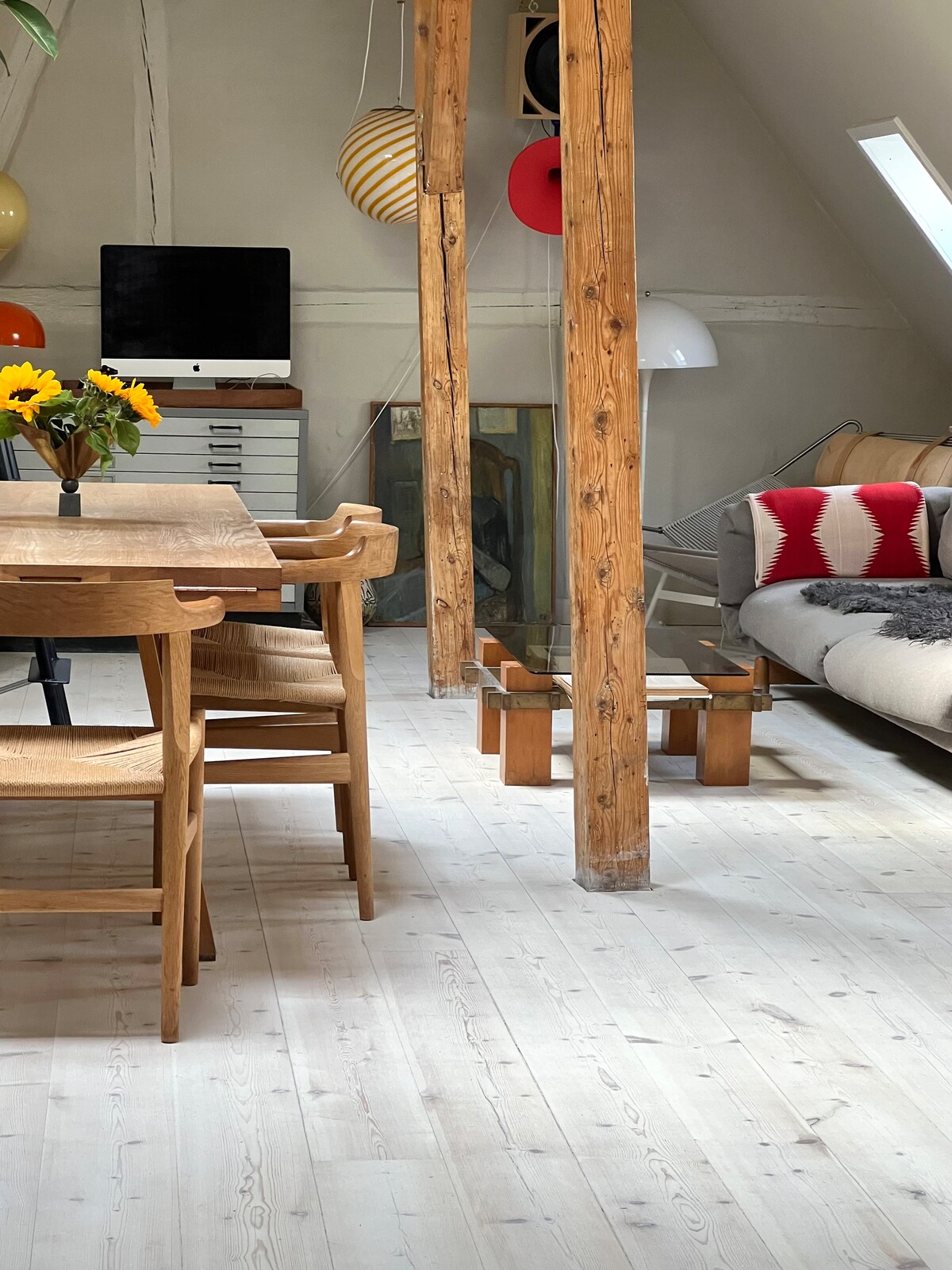 Welcome to our loft in Frederiksberg, centrally located in Copenhagen. The apartment has a built-in studio with a 5-meter ceiling height and has previously housed the painters Per Kirkeby and Jais Nielsen. Per Kirkeby hosted the formation of ABCinema.