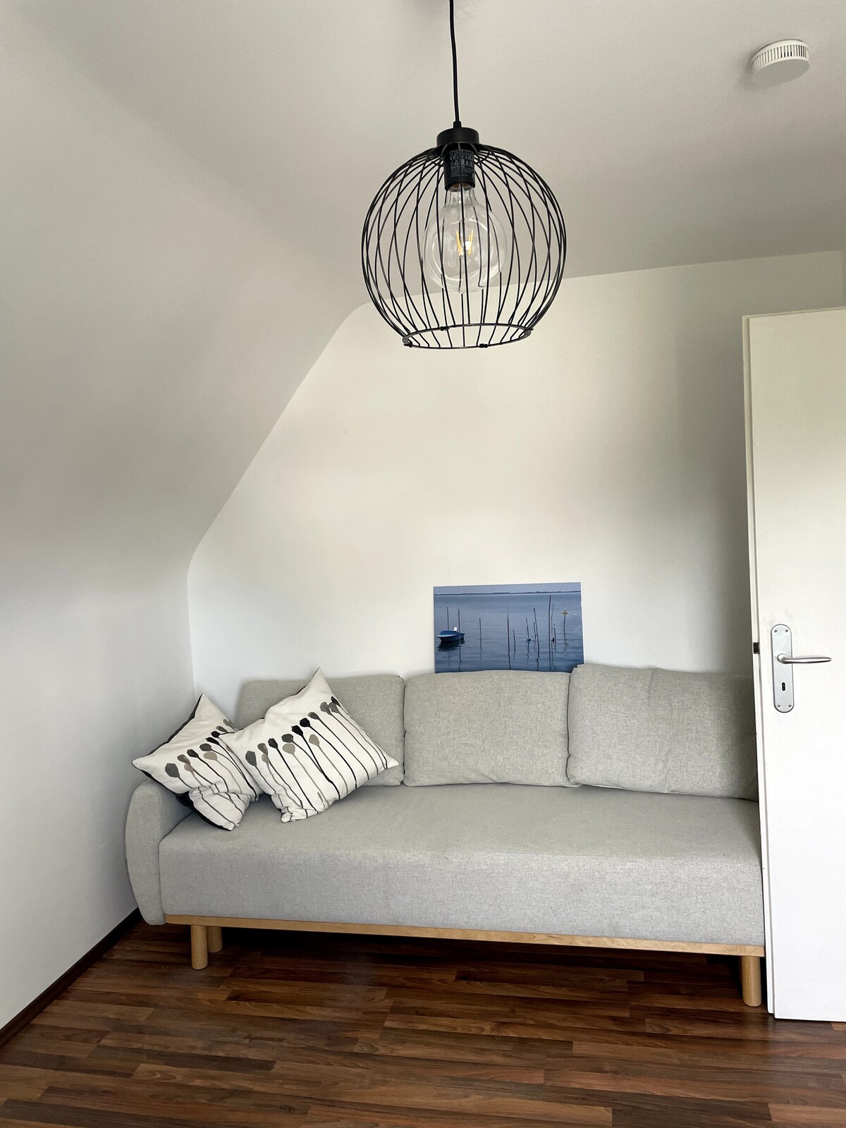 I rent a simply furnished 1.5 room basement apartment with separate entrance for 2 persons maximum. Next to the bedroom with two separate beds there is a small dining area with fridge, kettle and coffee machine. Cutlery as well as plates and cups are present. A private shower and toilet are also available. Very quietly located in a residential area. A covered parking space on the property can also be used during the stay.