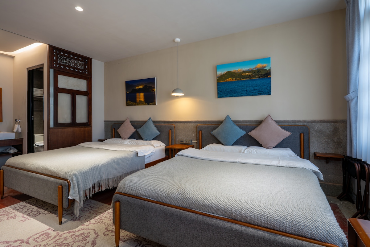 Our exquisite double room, simple design, located next to Miaokou Night Market in the center of Keelung City, is a good choice for business trips and travel. The room has comfortable beds, full bathroom facilities, bathroom toiletries, premium bedding, and a 42-inch LCD TV, desk, telephone, etc. Clean, elegant accommodation that makes you feel at home, whether traveling or on business, is your best choice.