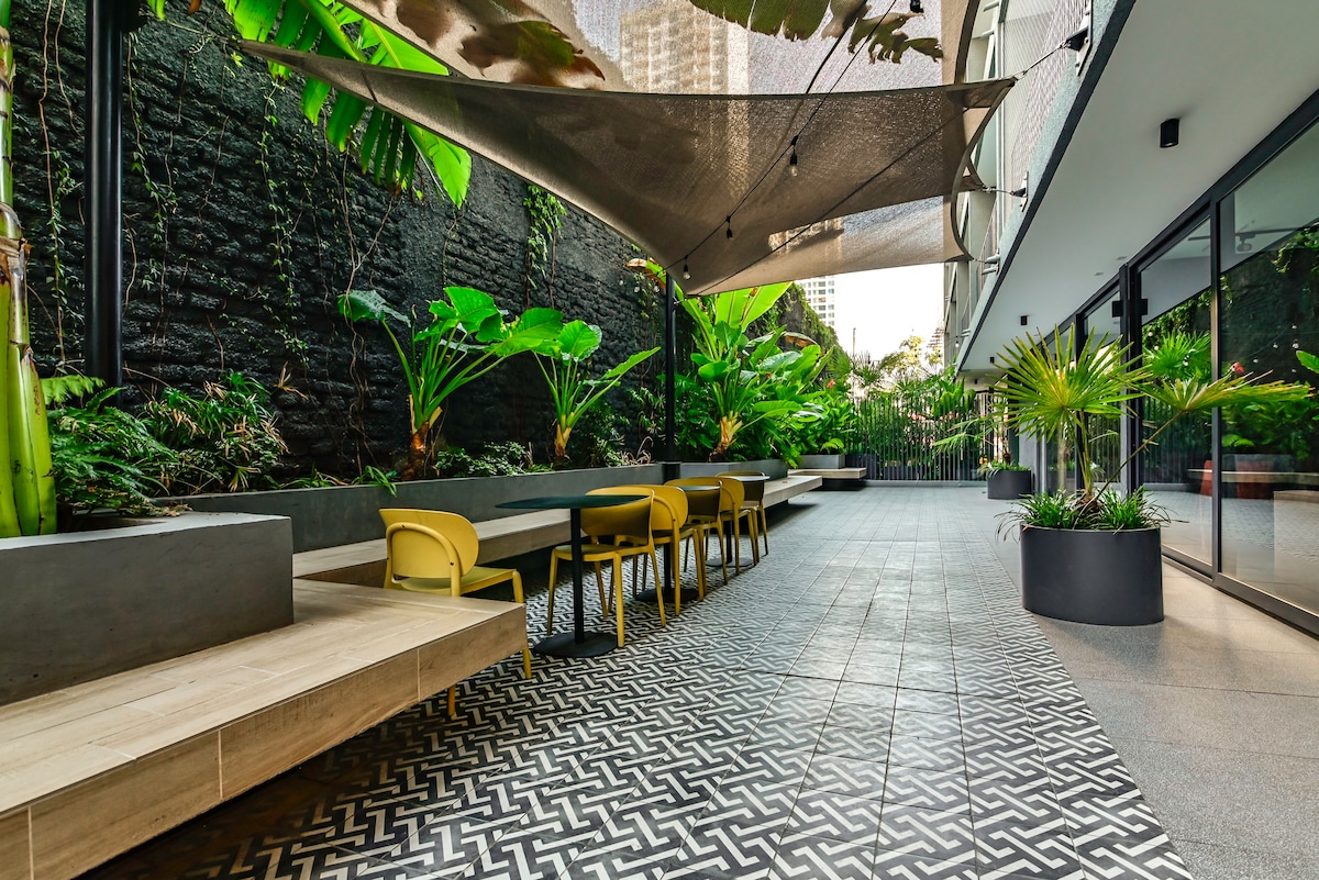Discover this new boutique-style apartment with green areas, designed to offer a comfortable, functional and premium experience in the strategic centre of Santiago, just 3 blocks from the Alberto Hurtado Metro, line 1. It also has excellent connectivity, blocks from the South Bus Terminal and Tur Bus direct transport to the international airport, as well. to an important hospital network such as a mutual safety clinic and Telethon