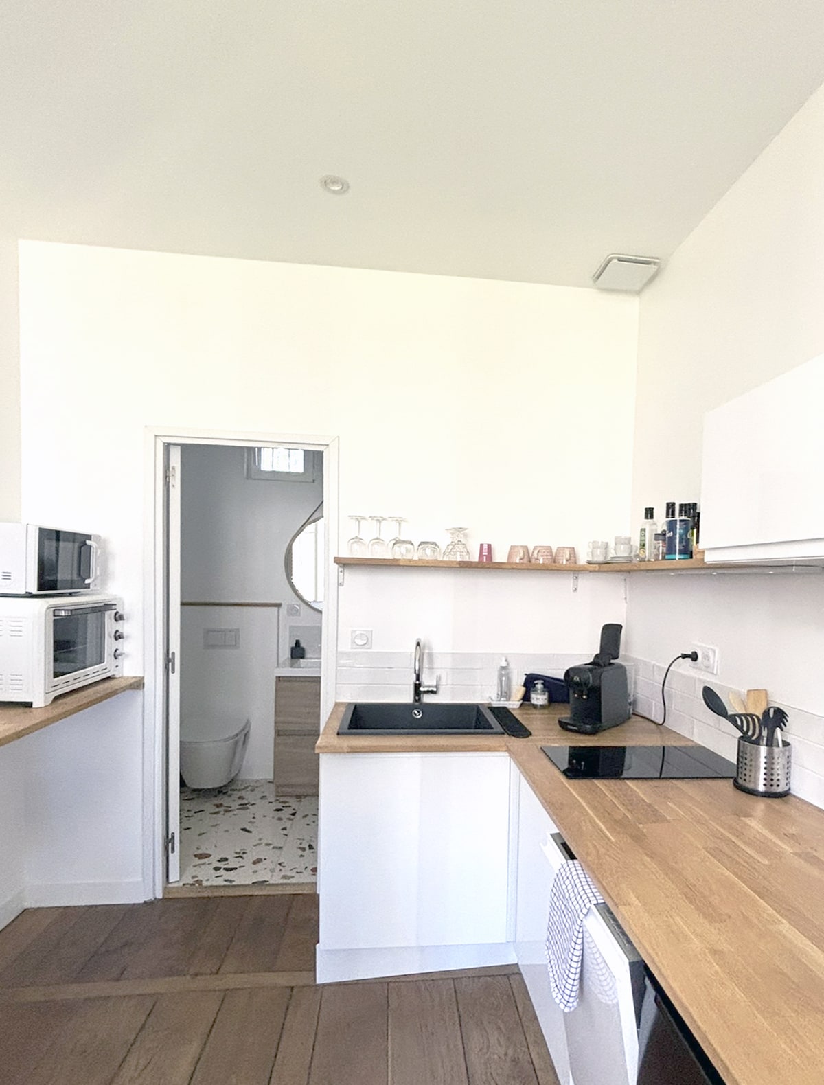 Located in the heart of Rennes, this studio offers you an elegant combination of old-world charm and modern comfort. This recently renovated charming apartment is entirely at your disposal with a lounge-office area to relax, a fully equipped kitchen overlooking the living room with a sleeping area with a queen size bed and a pleasant bathroom.