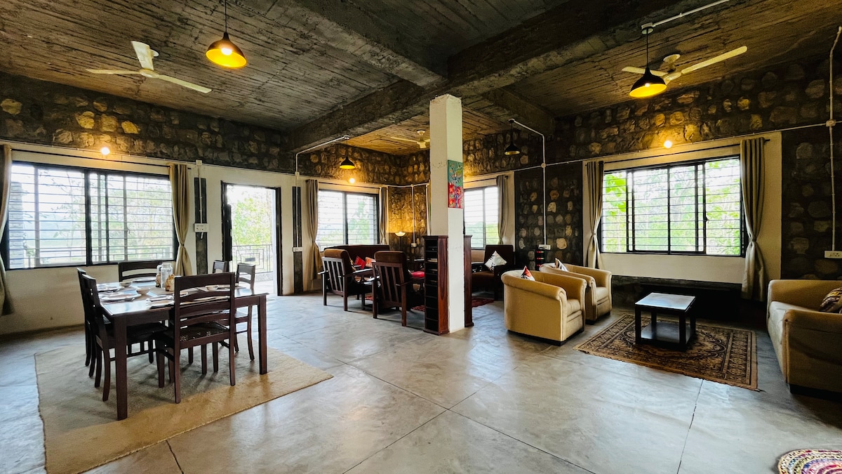 A Villa built inside a 30 acre Guava Orchard with a Private River Bank! An Agro-Tourism experience where you can do a peaceful riverside picnic or have farm walk where you can harvest our produce. It is fun to pick fruits and vegetables with your own hands ! Our spacious home features 14-ft high ceilings, airy rooms, and a large living space. We also provide Fresh Farm to Table Meals. Experience the perfect blend of nature, comfort, and relaxation at Dungi Ser.