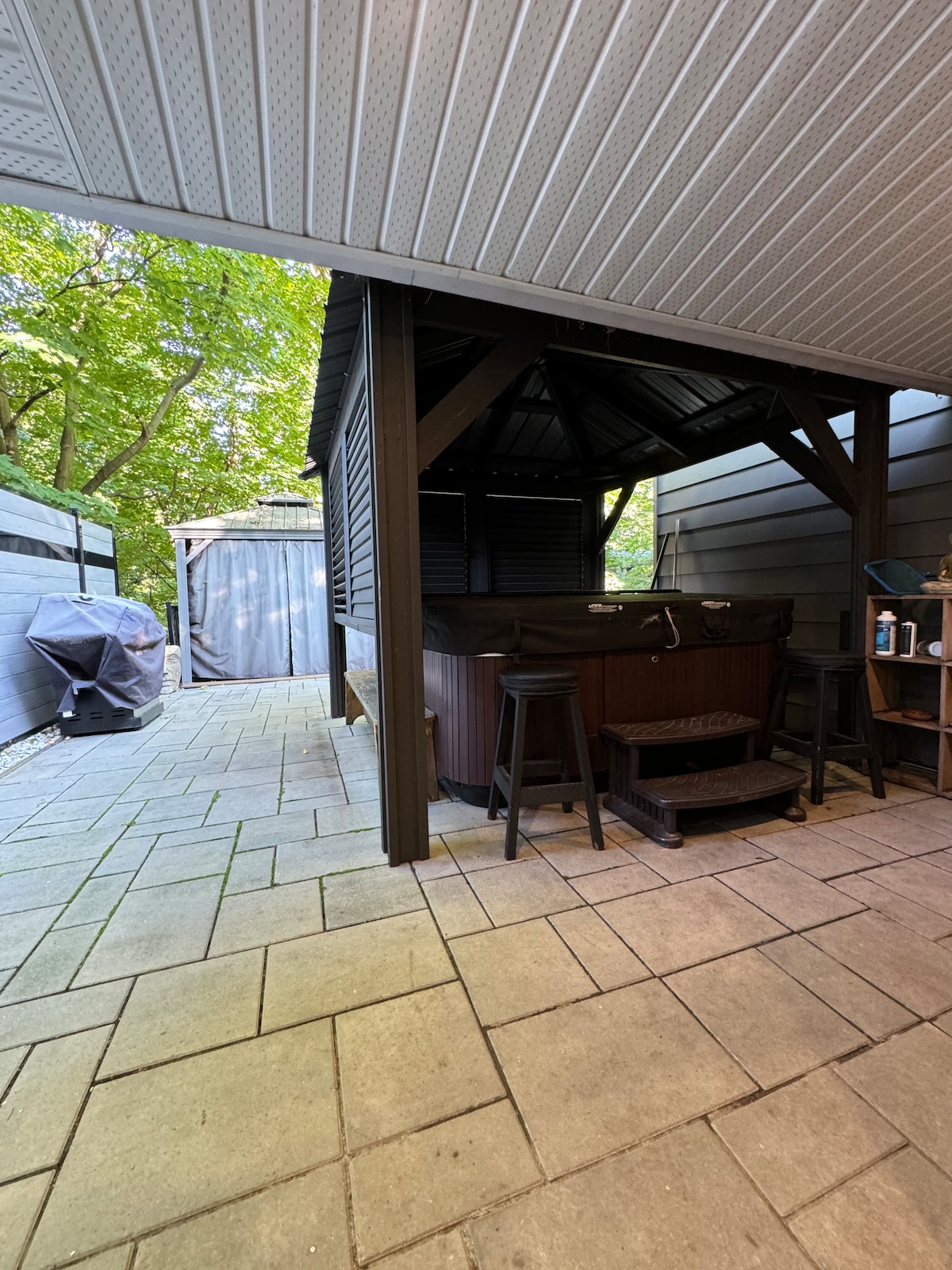 New! Come and enjoy a thermal experience thanks to our private HOT TUB and SAUNA. Relaxation and rejuvenation await you with our soft and unique decor with a forest view. *A destination of choice for lovers of nature and tranquility. *Create beautiful memories as a couple, with family or friends in a dream environment. Privacy!